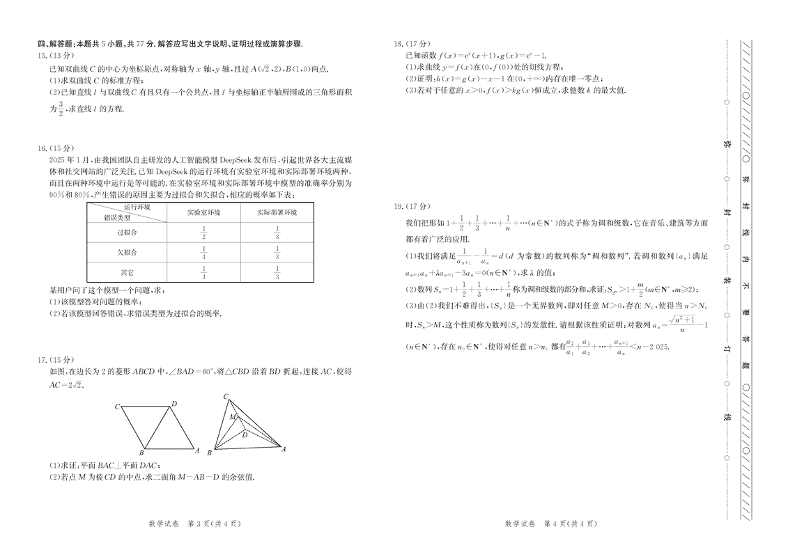 2025届河北省邯郸市高三保温数学试题质量较高,题型多样,将作为考察考生对相应考点的掌握程度,考后将及时整理试题及答案解析相关信息,以供考生学习交流!