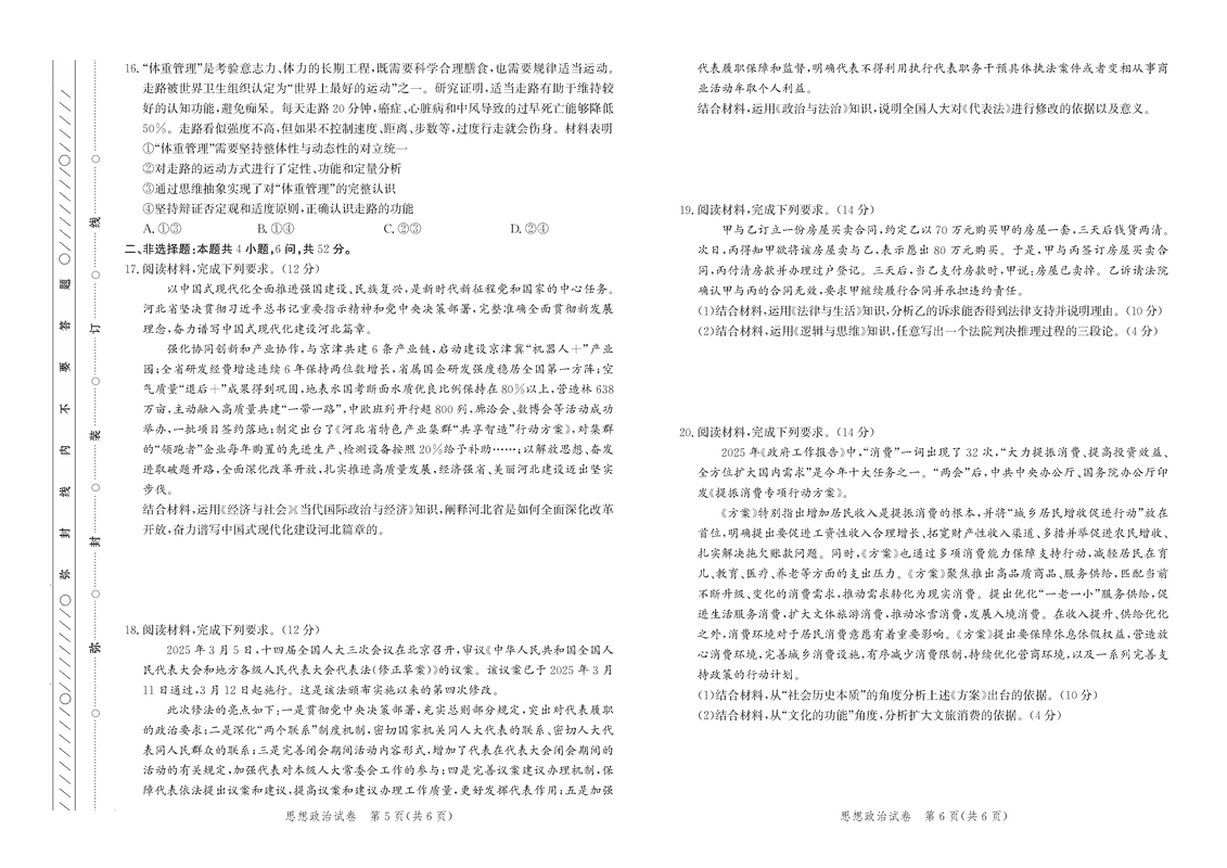 2025届河北省邯郸市高三保温政治试题质量较高,题型多样,将作为考察考生对相应考点的掌握程度,考后将及时整理试题及答案解析相关信息,以供考生学习交流!