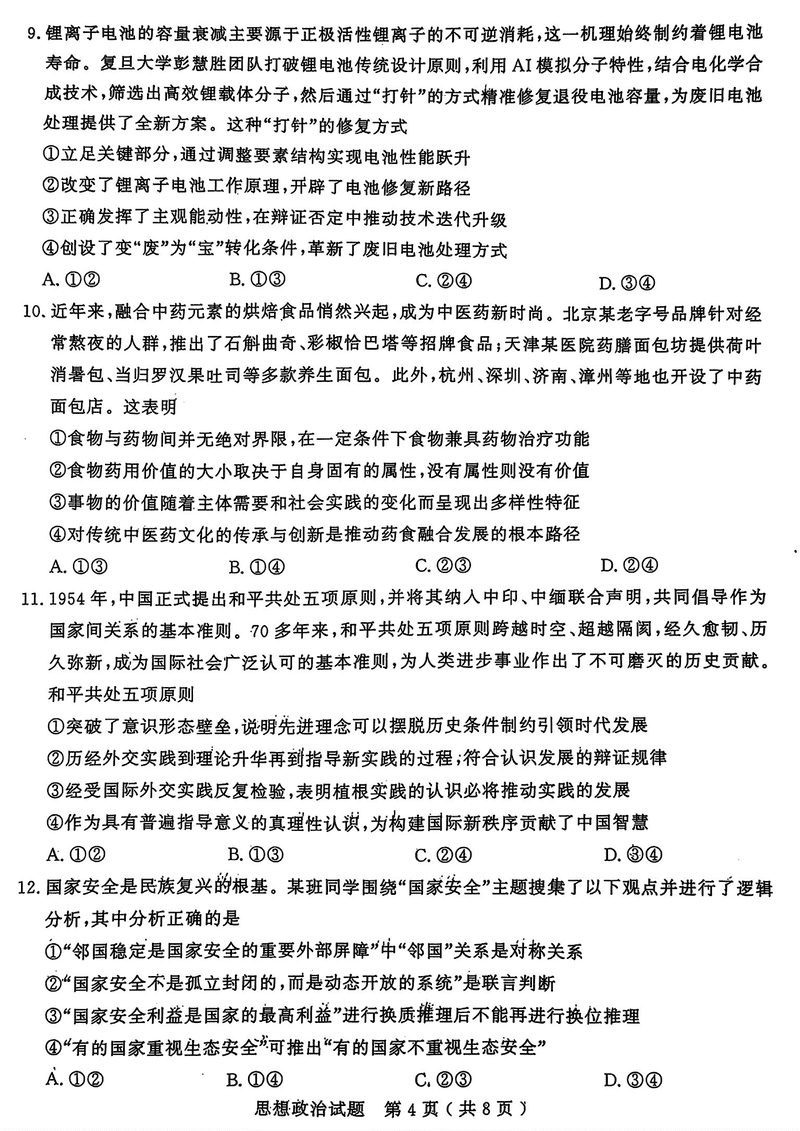 导读济宁三模2025年高考模拟政治试题质量较高,题型多样,将作为考察考生对相应考点的掌握程度,考后将及时整理试题及答案解析相关信息,以供考生学习交流!政治试题及答案解析