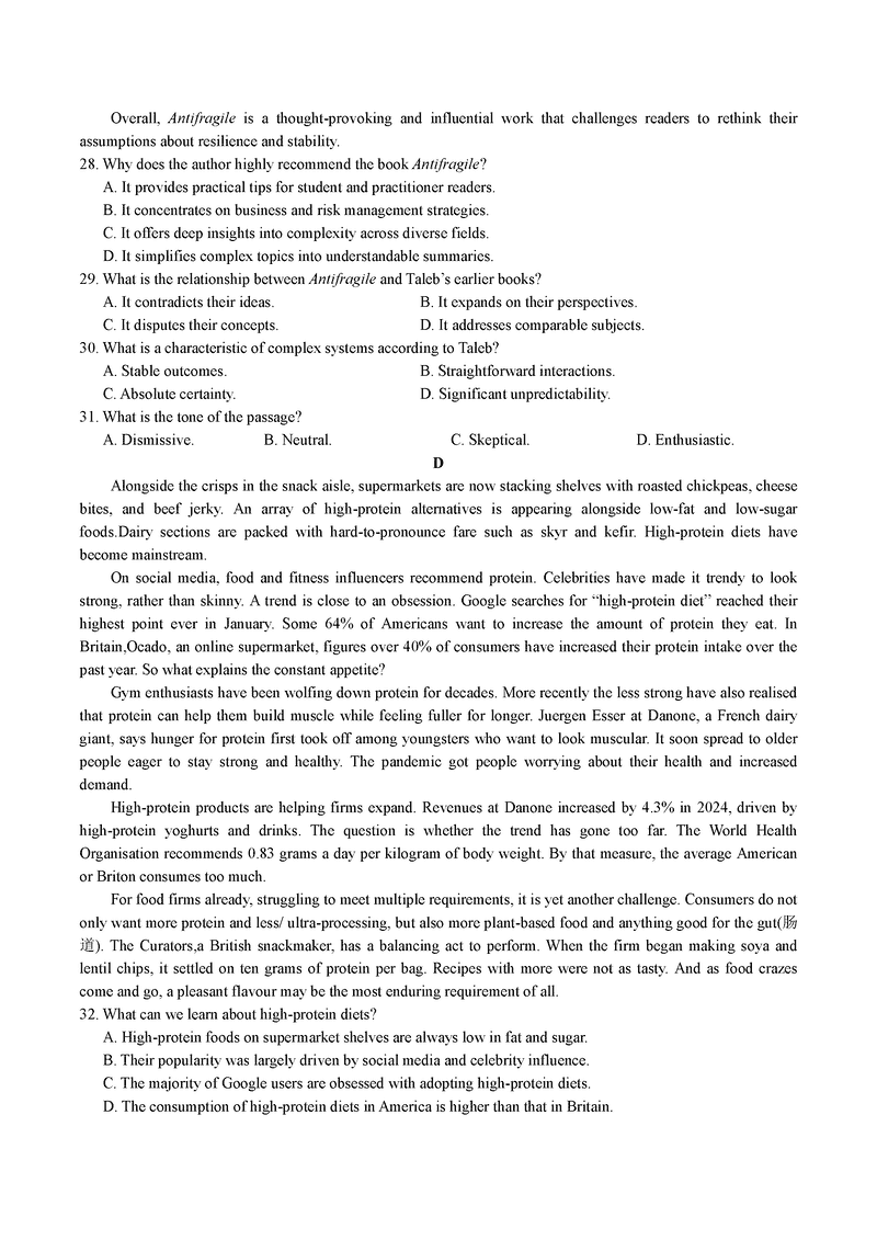 导读浙江省六校(杭二/温中金华一中/绍兴一中/舟山中学/衢州二中)联考2025届高三5月高考模拟英语试题质量较高,题型多样,将作为考察考生对相应考点的掌握程度,考后将及时整理试题及答案解析相关信息,以供考生学习交流!英语试题及答案解析