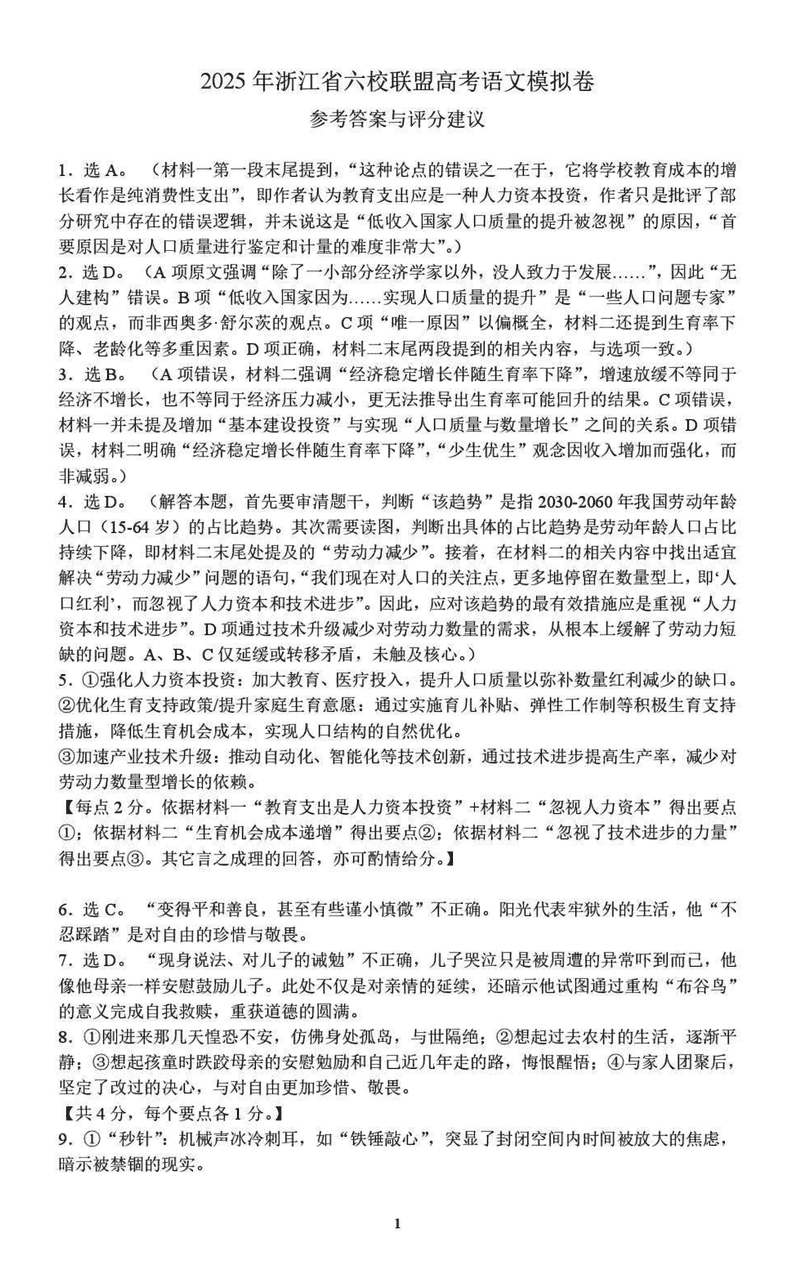 导读浙江省六校(杭二/温中金华一中/绍兴一中/舟山中学/衢州二中)联考2025届高三5月高考模拟语文试题质量较高,题型多样,将作为考察考生对相应考点的掌握程度,考后将及时整理试题及答案解析相关信息,以供考生学习交流!语文试题及答案解析
