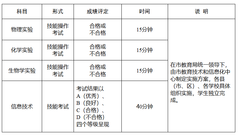 2.2025年八年级考试科目为:地理、生物学(含生物学实验)、信息技术;地理、生物学每科各赋分60分,2026年两科得分全部计入中考总分;信息技术评价结果用“合格”“不合格”呈现。