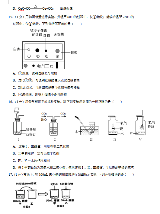 大试题为您提供2023上海市进才中学北校中考化学模拟试题及答案...