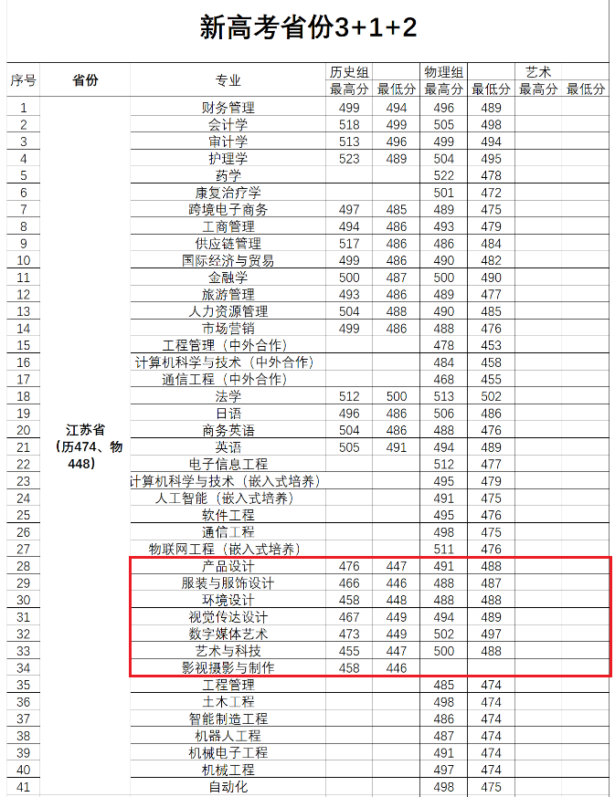 2022年无锡太湖学院各省各专业录取分数线-艺术类