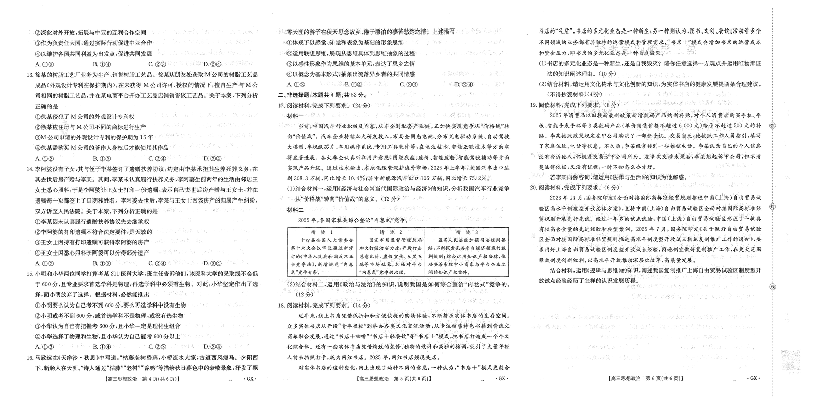 导读广西金太阳2026届9月高三联考政治试题质量较高,题型多样,将作为考察考生对相应考点的掌握程度,考后将及时整理试题及答案解析相关信息,以供考生学习交流!政治试题及答案解析