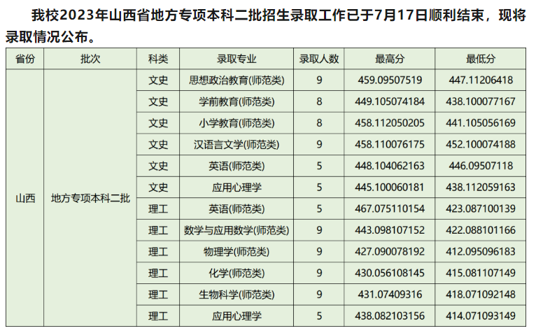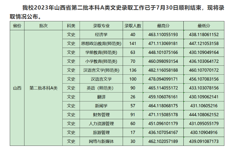 | 2024 | 山西 | 专项计划本科二批 | 文史/历史类 | 汉语言文学(师范类) | 493.116067201 | 474.108066183 | 16972 | 480.7 | 446 |