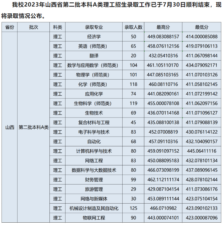| 2024 | 山西 | 本科第二批A类 | 理工/物理类 | 财务管理 | 491.094099166 | 461.087112148 | 71413 | 469.4 | 418 |