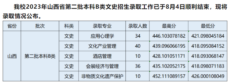 | 2024 | 山西 | 本科第二批B类 | 文史/历史类 | 文化产业管理 | 467.105077186 | 455.109074169 | 22179 | 458.9 | 446 |