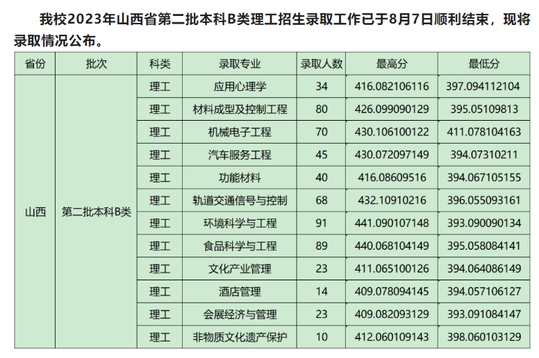 | 2024 | 山西 | 本科第二批B类 | 理工/物理类 | 食品科学与工程 | 452.088103159 | 430.102110153 | 92671 | 433.7 | 418 |