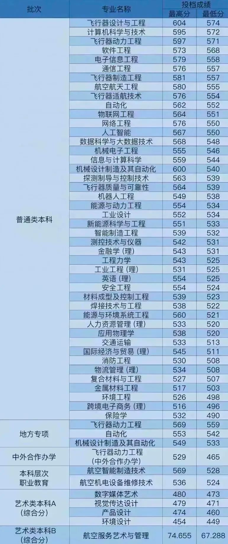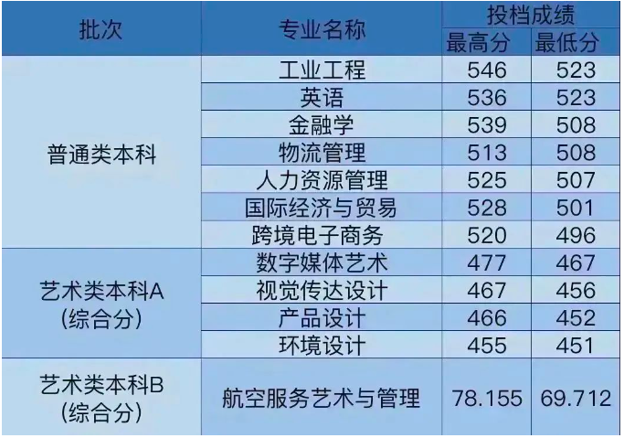 | 艺术类本科 | 航空服务艺术与管理 | 艺术 | 物理或历史 | 物理 | 316(文化分) 65(综合分) |