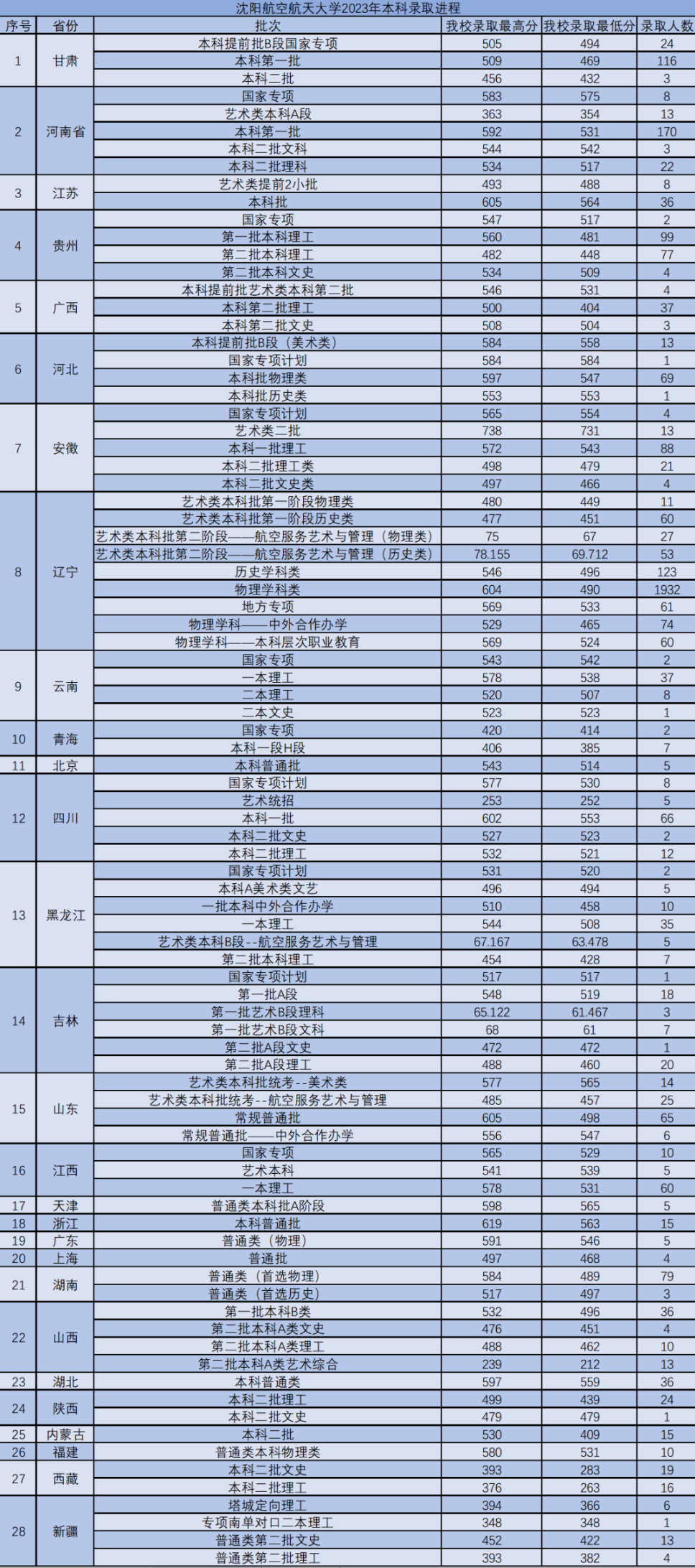 2023年沈阳航空航天大学录取分数线【全国】