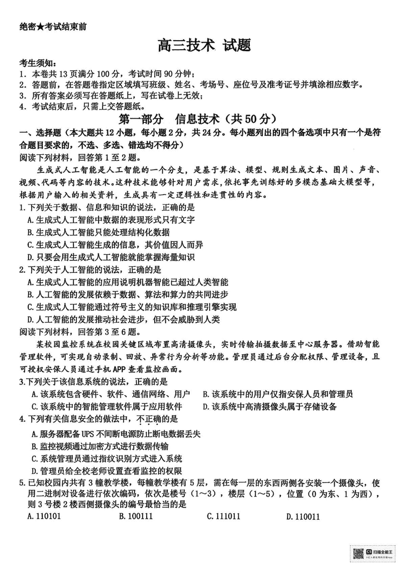 浙江省七彩阳光新高考研究联盟2026届高三上学期返校联考政治试题质量较高,题型多样,将作为考察考生对相应考点的掌握程度,...