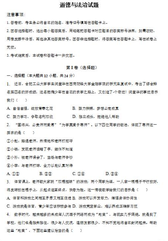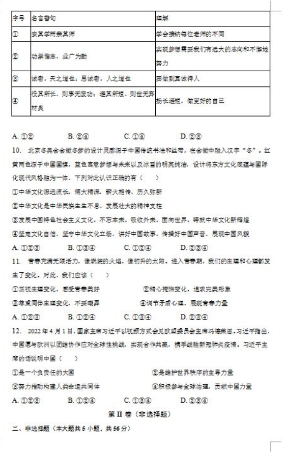 导读大试题为您提供2023青岛第二十六中学中考政治模拟试题