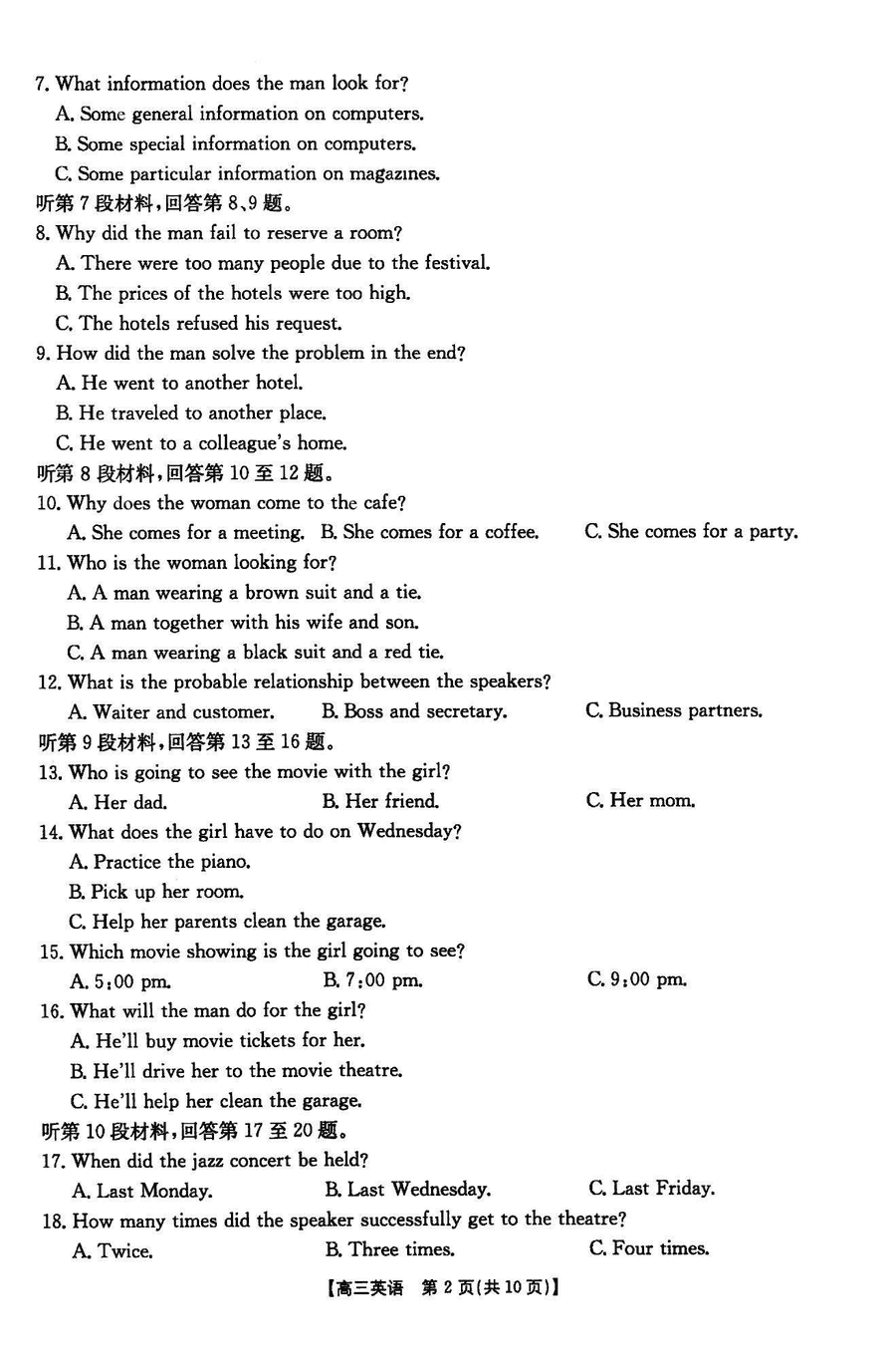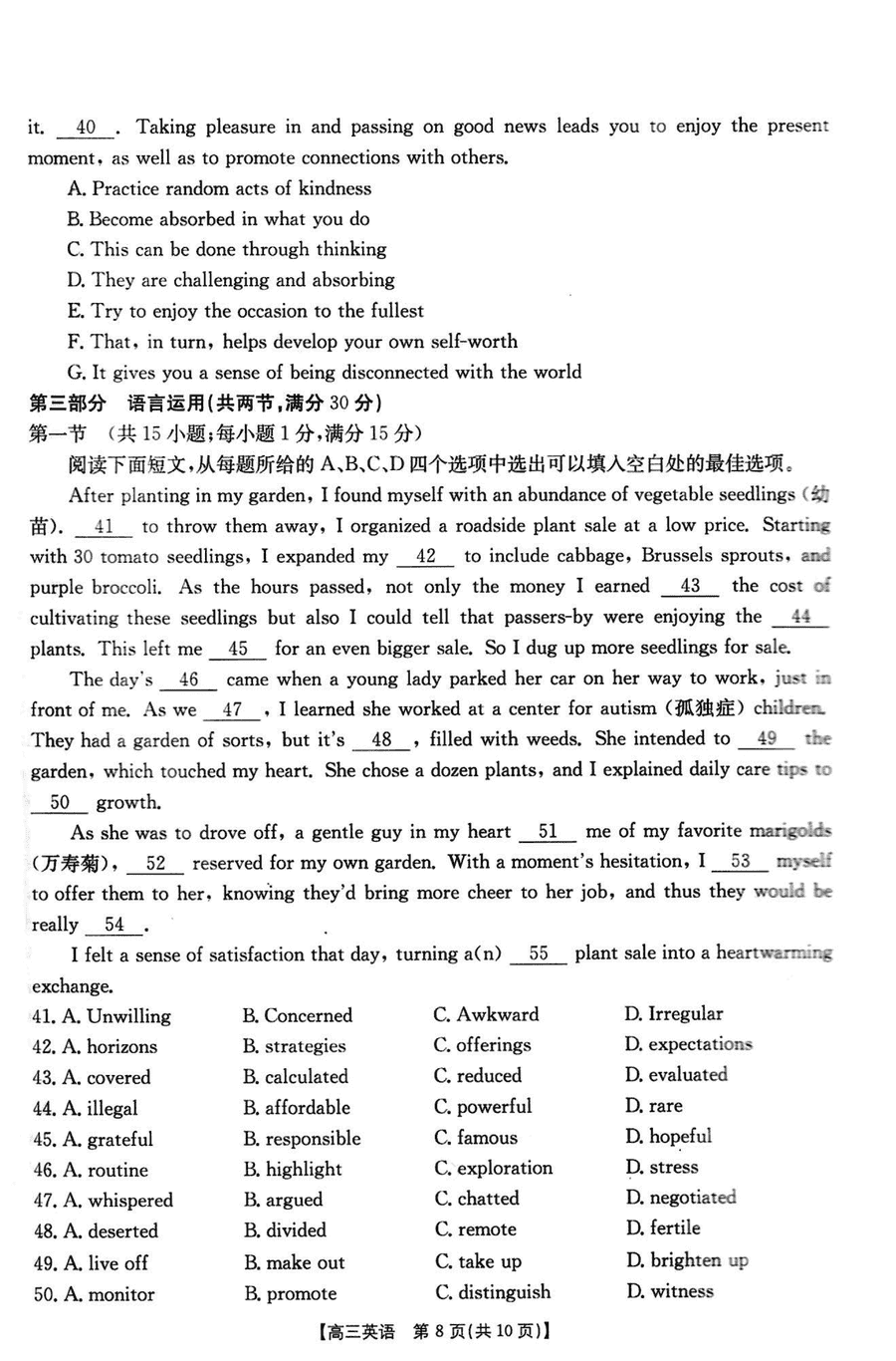 咸阳市2025年高考模拟检测(二)英语试题质量较高,题型多样,将作为考察考生对相应考点的掌握程度,考后将及时整理试题及答...
