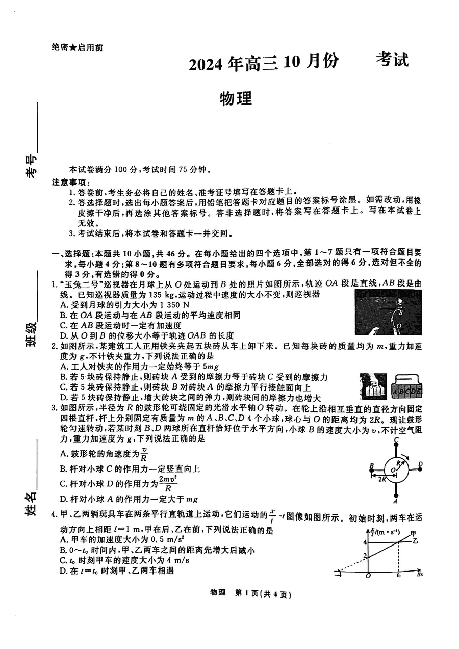 辽宁省名校联盟2024年高三10月份联考物理试题质量较高,题型多样,将作为考察考生对相应考点的掌握程度,考后将及时整理试题及答案解析相关信息,以供考生学习交流!