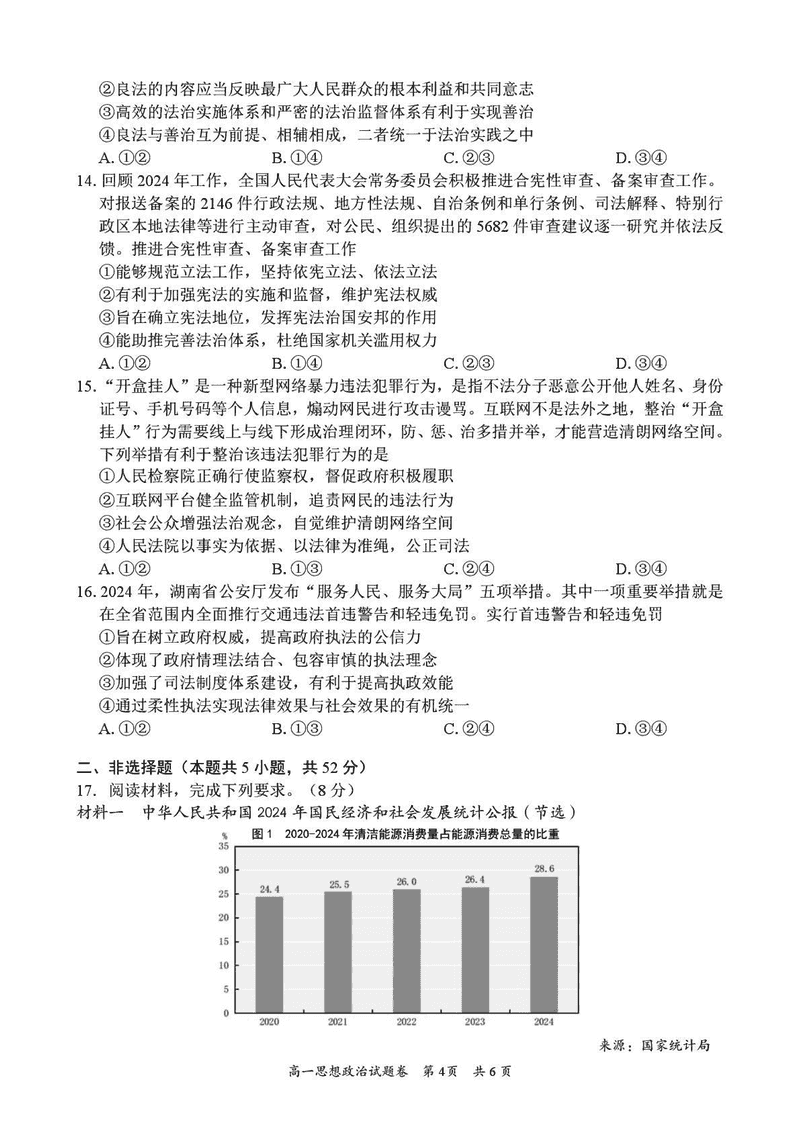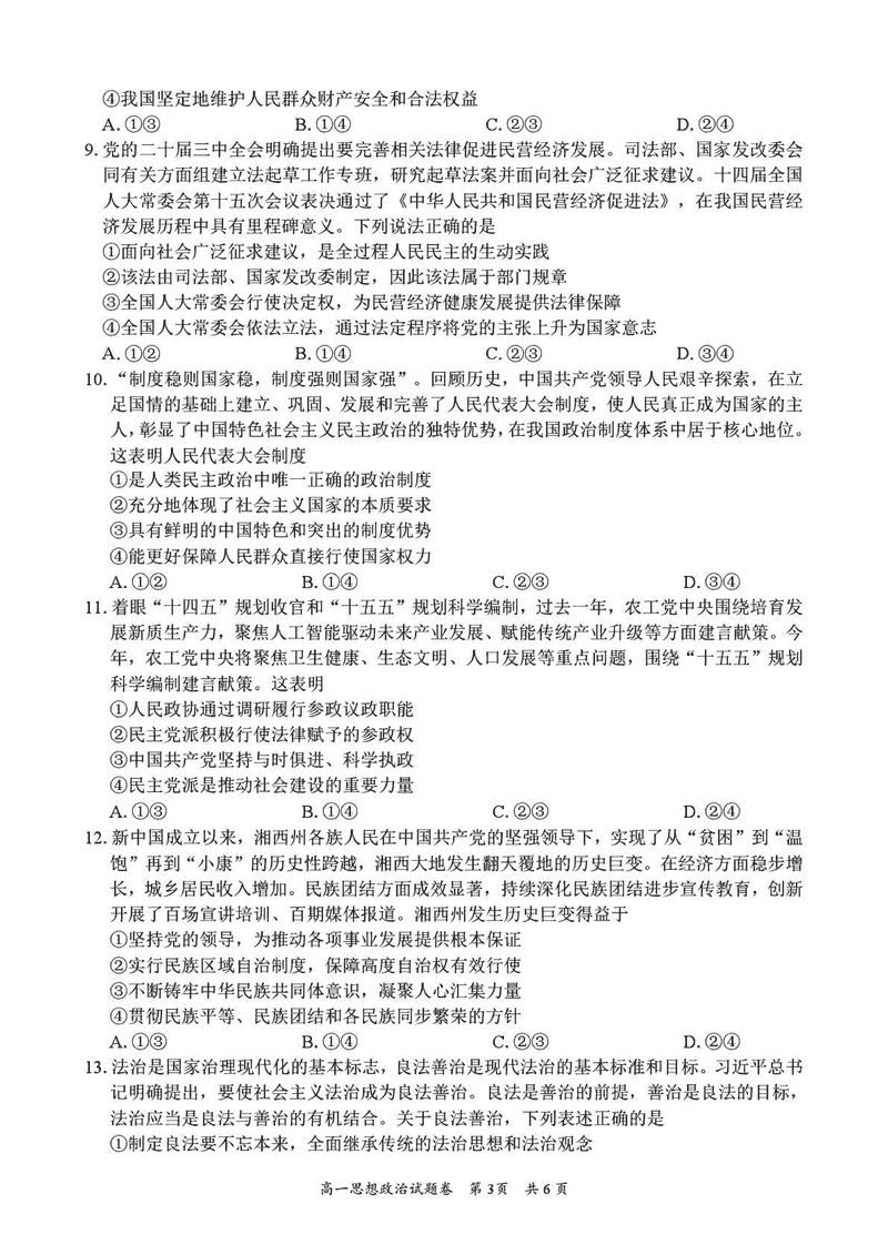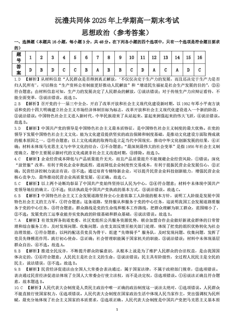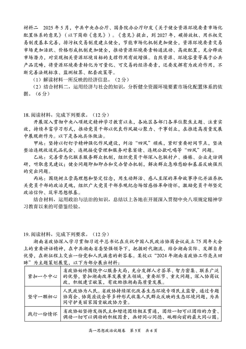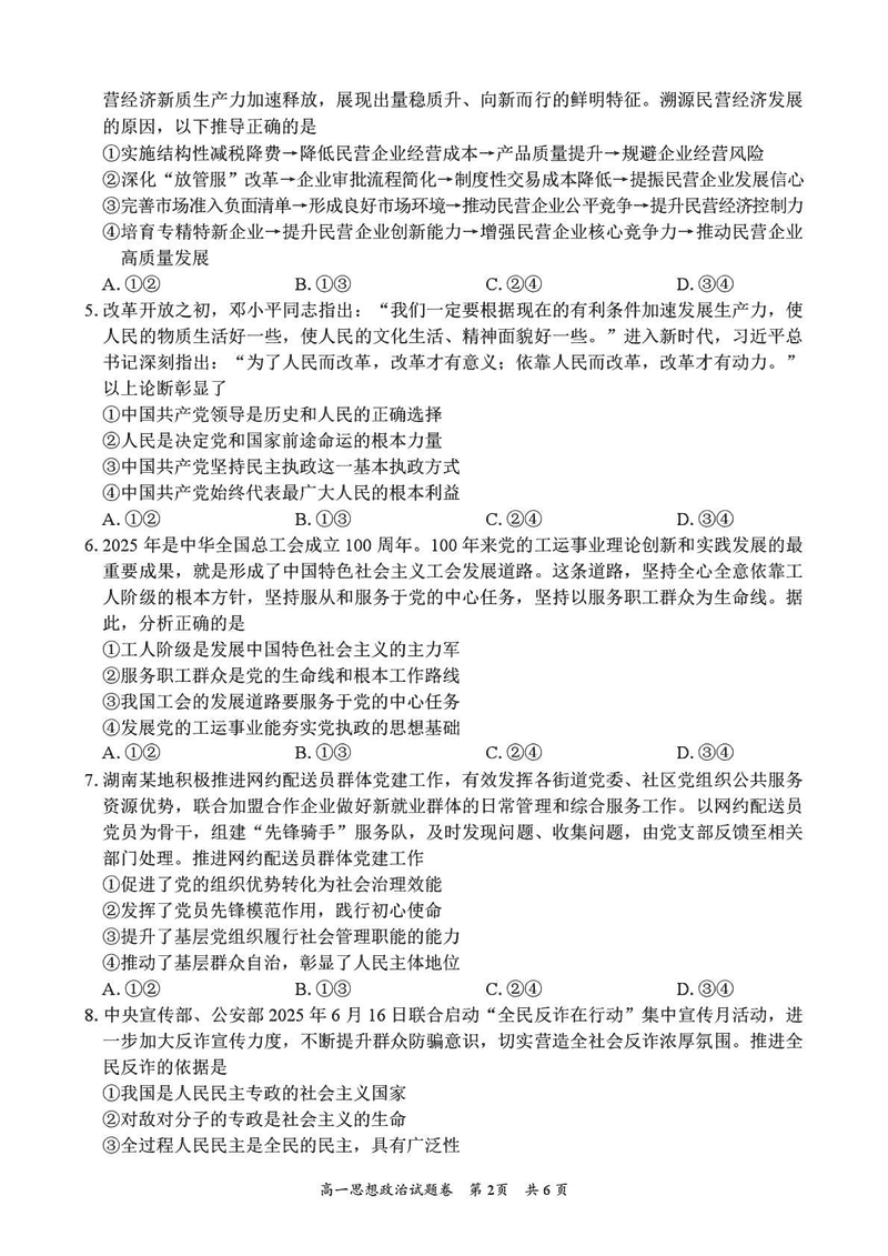 湖南沅澧共同体2025年高一下学期期末政治试题质量较高,题型多样,将作为考察考生对相应考点的掌握程度,考后将及时整理试题及答案解析相关信息,以供考生学习交流!