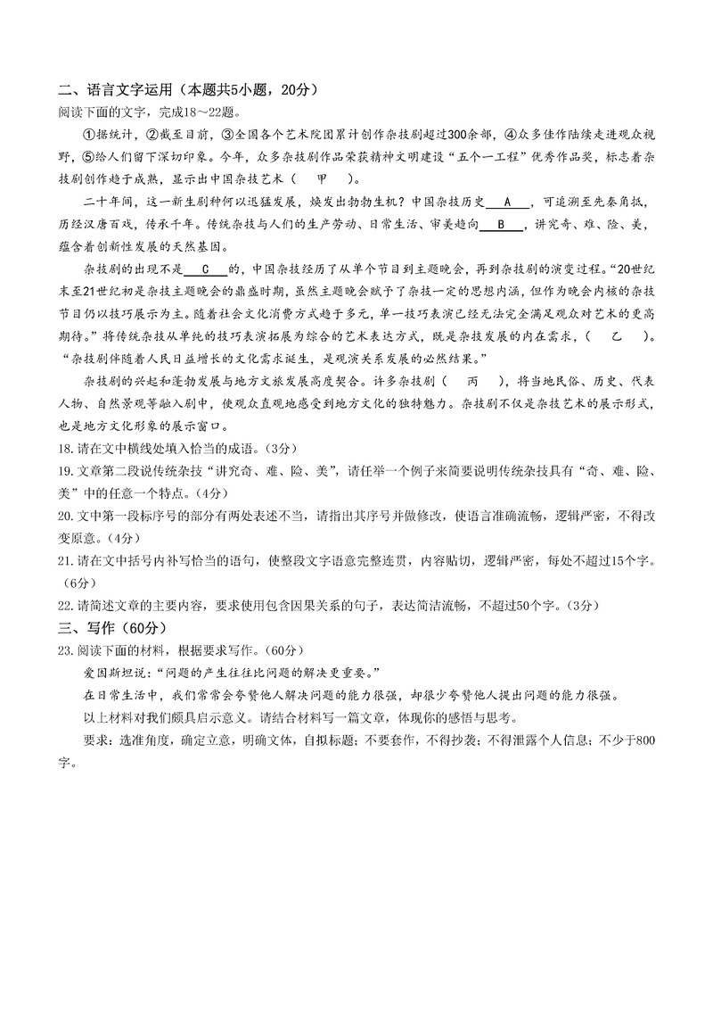 导读河北“五个一”名校联盟2024-2025学年高二7月期末语文试题质量较高,题型多样,将作为考察考生对相应考点的掌握程度,考后将及时整理试题及答案解析相关信息,以供考生学习交流!汇总:河北“五个一”名校联盟2024-2025学年高二7月期末语