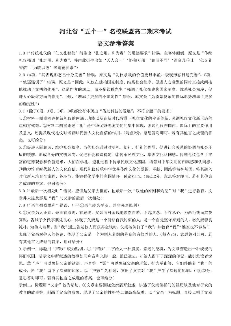 河北“五个一”名校联盟2024-2025学年高二7月期末语文试题质量较高,题型多样,将作为考察考生对相应考点的掌握程度,考后将及时整理试题及答案解析相关信息,以供考生学习交流!