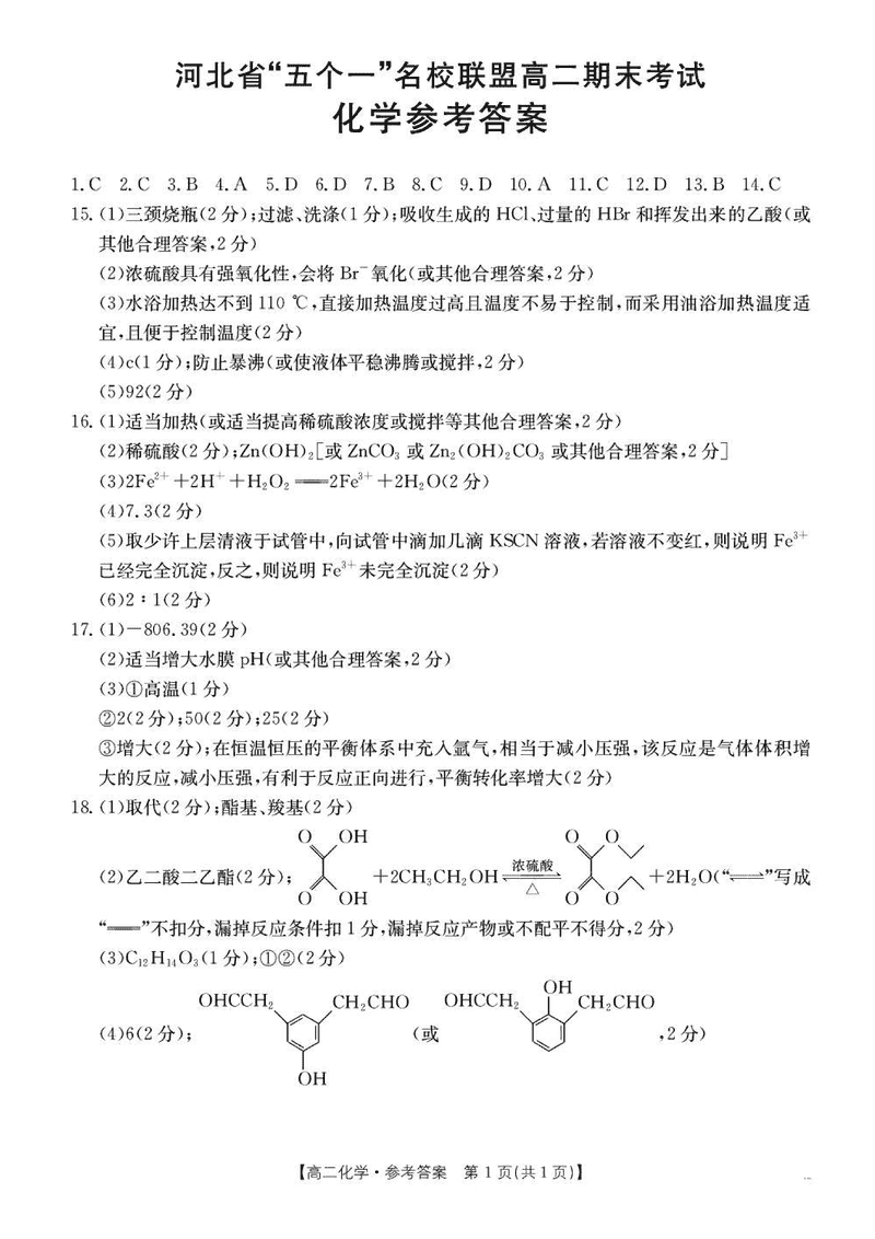 河北“五个一”名校联盟2024-2025学年高二7月期末化学试题质量较高,题型多样,将作为考察考生对相应考点的掌握程度,考后将及时整理试题及答案解析相关信息,以供考生学习交流!