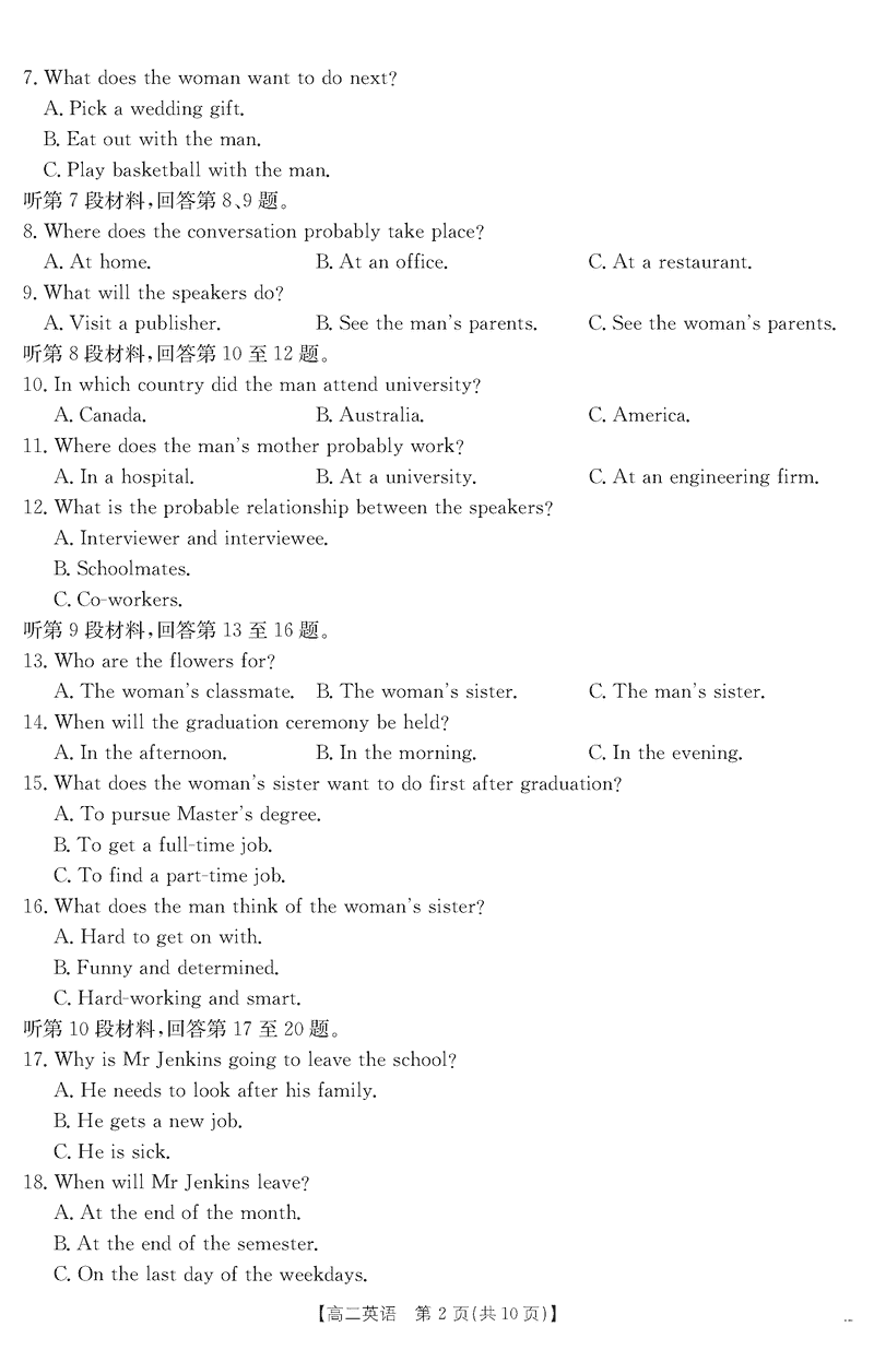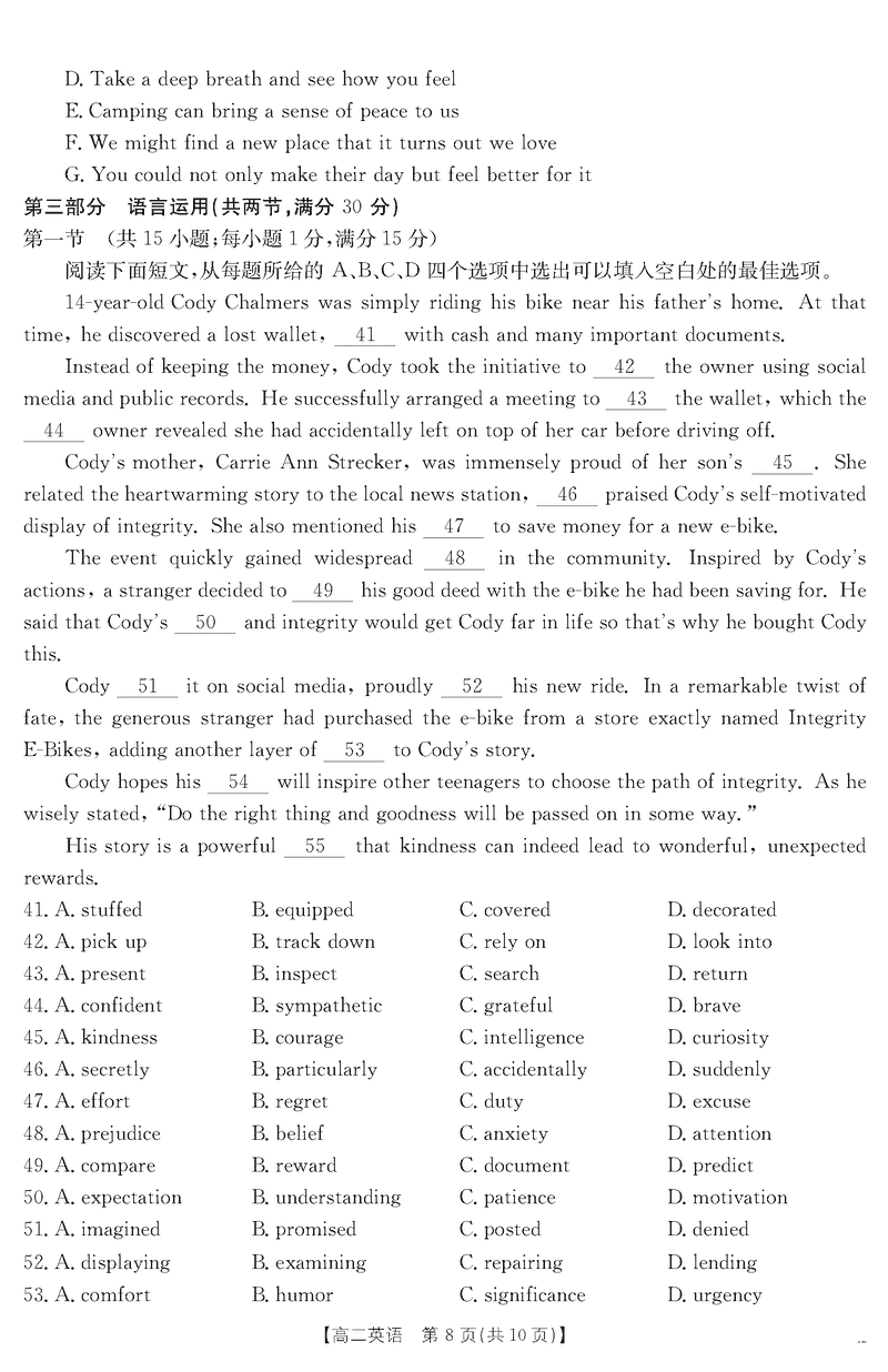 河北金太阳2024-2025学年高二下学期7月期末英语试题质量较高,题型多样,将作为考察考生对相应考点的掌握程度,考后将及时整理试题及答案解析相关信息,以供考生学习交流!