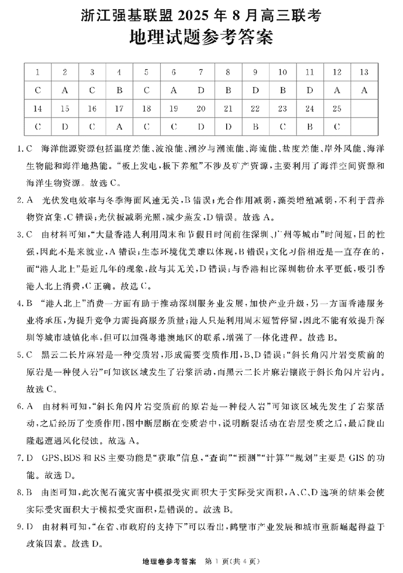 导读浙江强基联盟2025年8月高三联考地理试题质量较高,题型多样,将作为考察考生对相应考点的掌握程度,考后将及时整理试题及答案解析相关信息,以供考生学习交流!汇总:浙江强基联盟2025年8月高三联考地理试题及答案解析