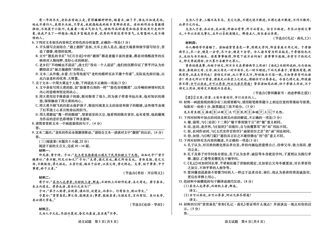 安徽省天一大联考2026届高三8月秋季检测语文试题质量较高,题型多样,将作为考察考生对相应考点的掌握程度,考后将及时整理试题及答案解析相关信息,以供考生学习交流!