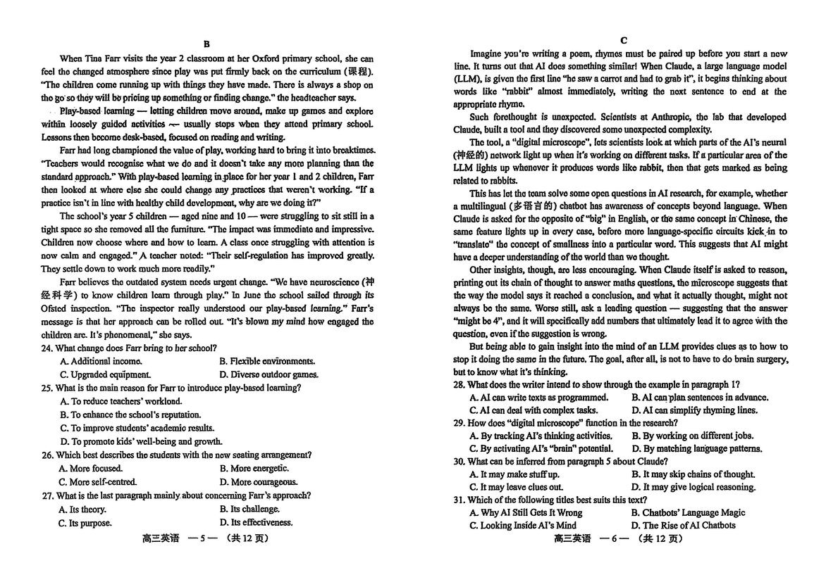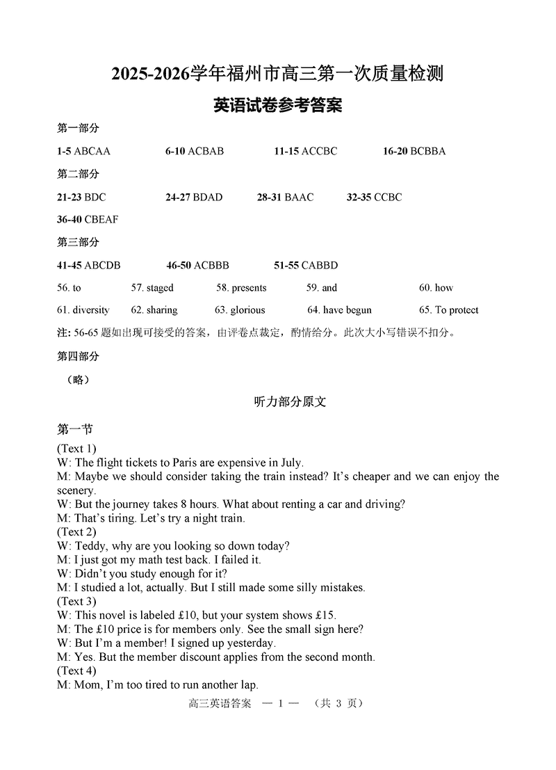 2025-2026学年福州市高三第一次质检英语试题质量较高,题型多样,将作为考察考生对相应考点的掌握程度,考后将及时整理试题及答案解析相关信息,以供考生学习交流!