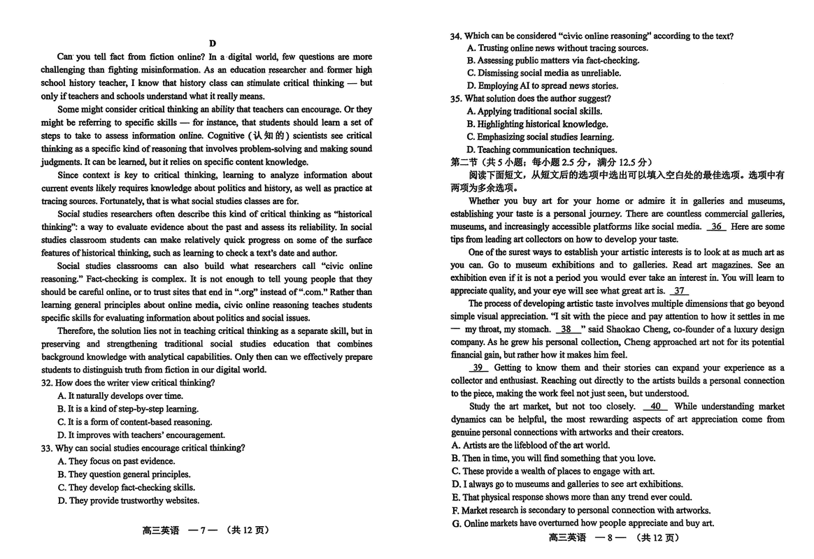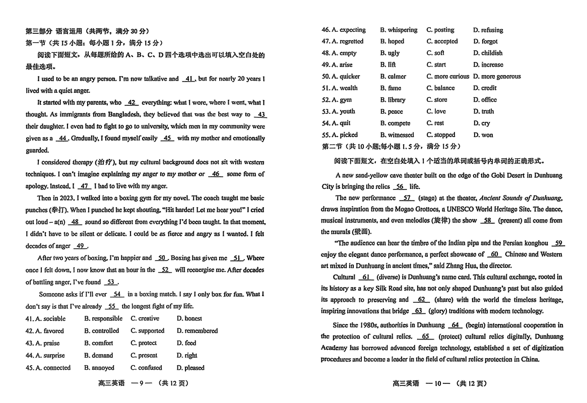 福建2025年4月高三九市联考英语试题质量较高,题型多样,将作为考察考生对相应考点的掌握程度,考后将及时整理试题及答案解...