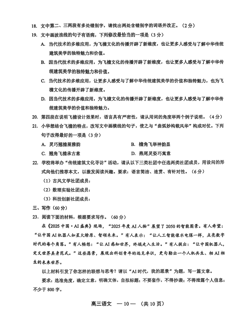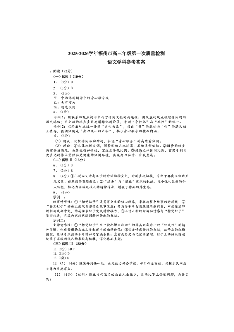 导读2025-2026学年福州市高三第一次质检语文试题质量较高,题型多样,将作为考察考生对相应考点的掌握程度,考后将及时整理试题及答案解析相关信息,以供考生学习交流!语文试题及答案解析