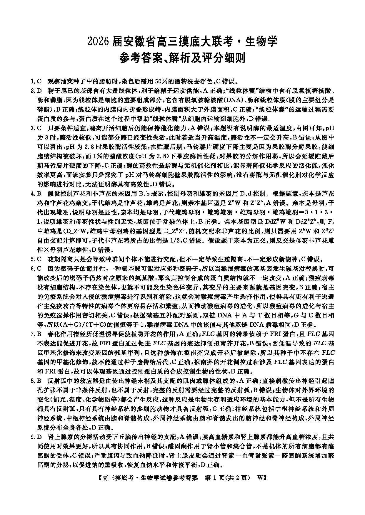 导读皖南八校2026届高三上学期8月摸底大联考生物试题质量较高,题型多样,将作为考察考生对相应考点的掌握程度,考后将及时整理试题及答案解析相关信息,以供考生学习交流!生物试题及答案解析