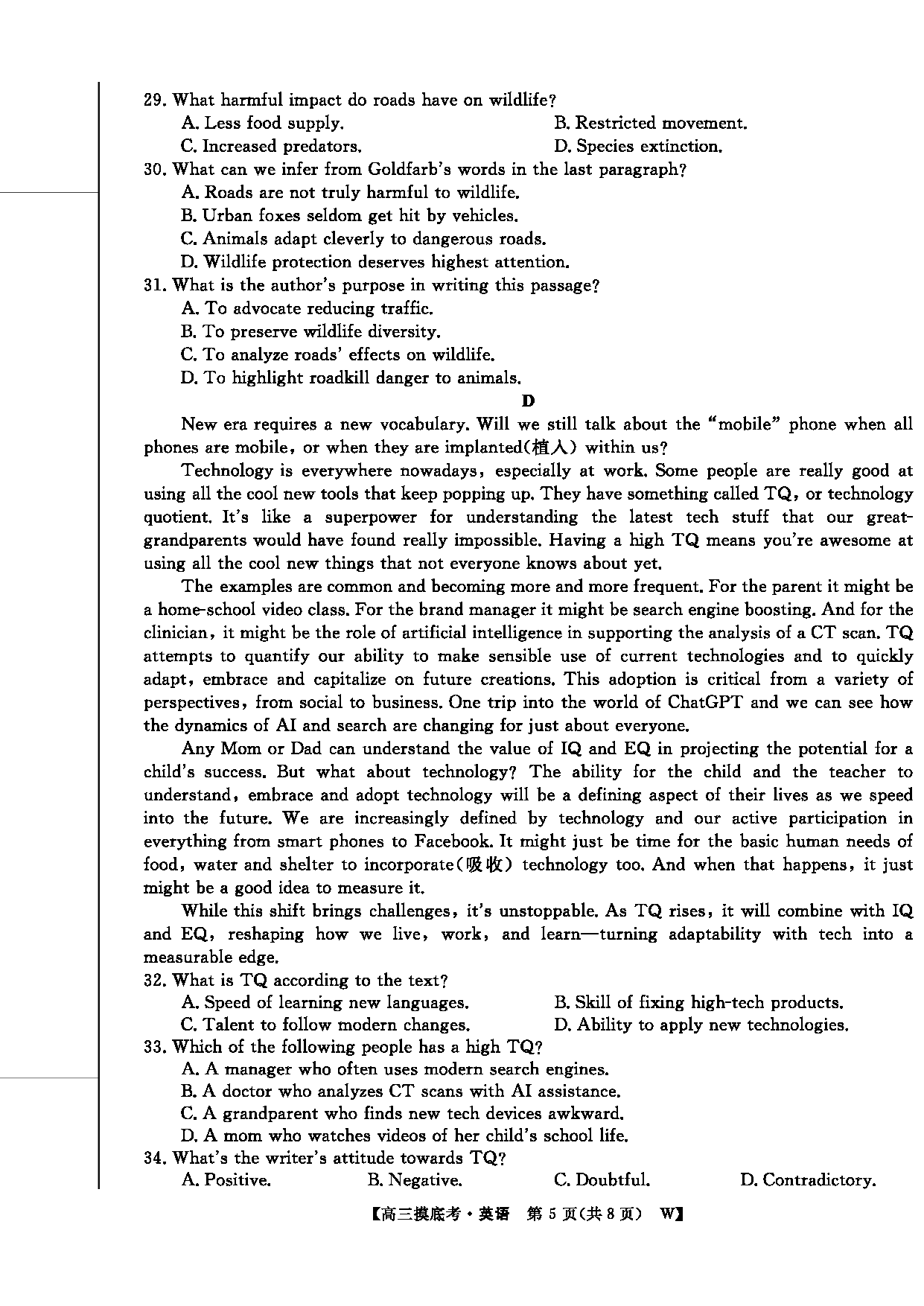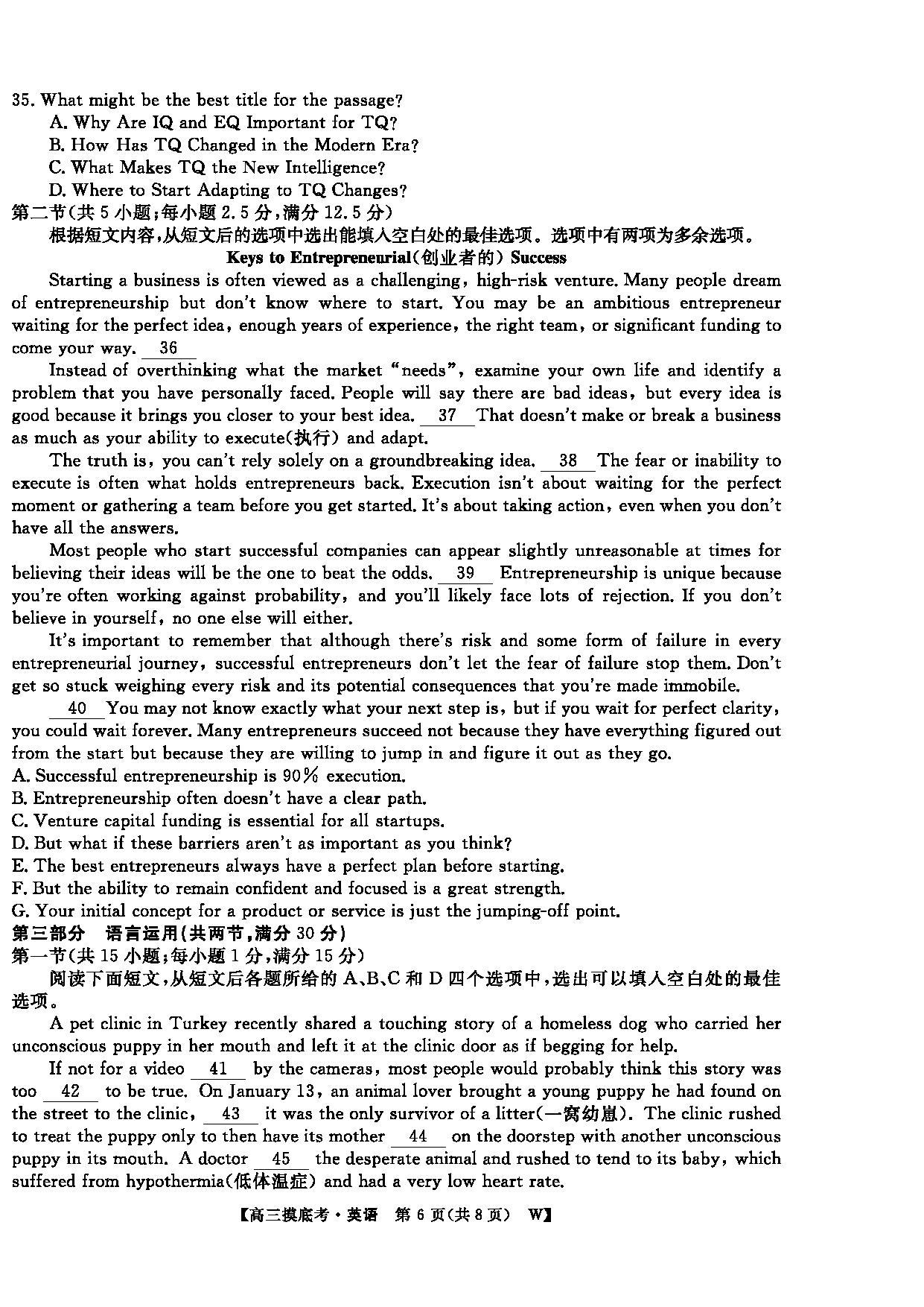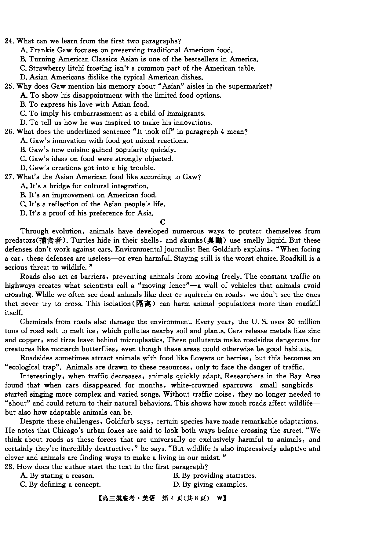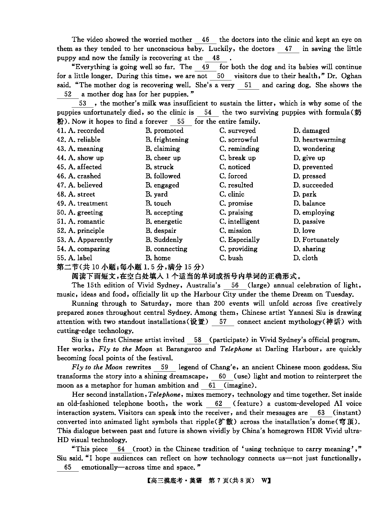 皖南八校2026届高三上学期8月摸底大联考英语试题质量较高,题型多样,将作为考察考生对相应考点的掌握程度,考后将及时整理试题及答案解析相关信息,以供考生学习交流!