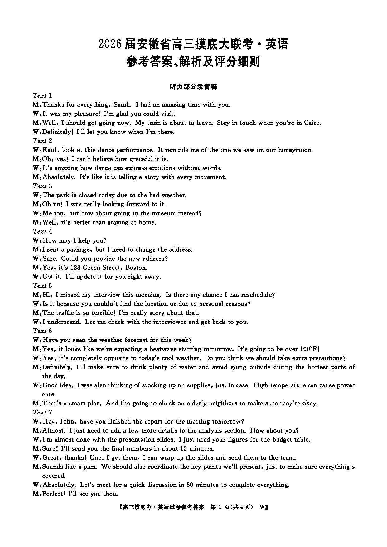 导读皖南八校2026届高三上学期8月摸底大联考英语试题质量较高,题型多样,将作为考察考生对相应考点的掌握程度,考后将及时整理试题及答案解析相关信息,以供考生学习交流!英语试题及答案解析