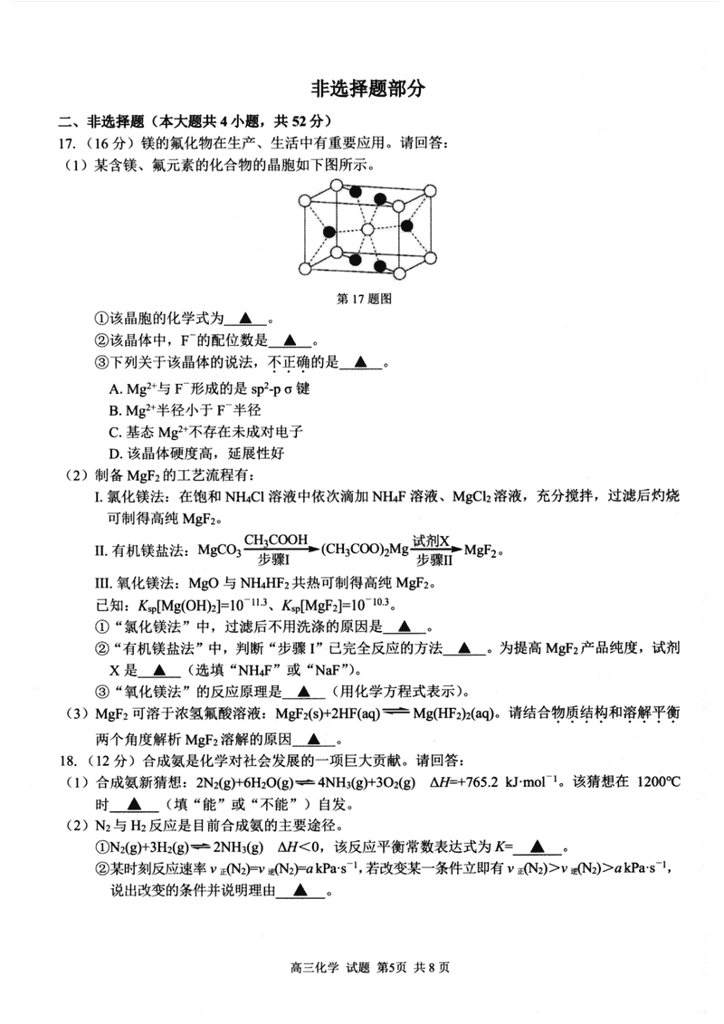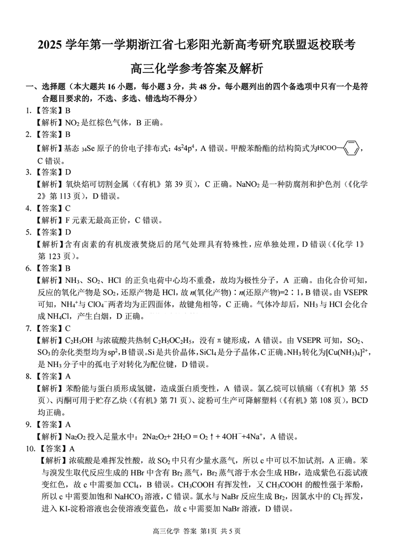 浙江省七彩阳光新高考研究联盟2026届高三上学期返校联考化学试题质量较高,题型多样,将作为考察考生对相应考点的掌握程度,考后将及时整理试题及答案解析相关信息,以供考生学习交流!