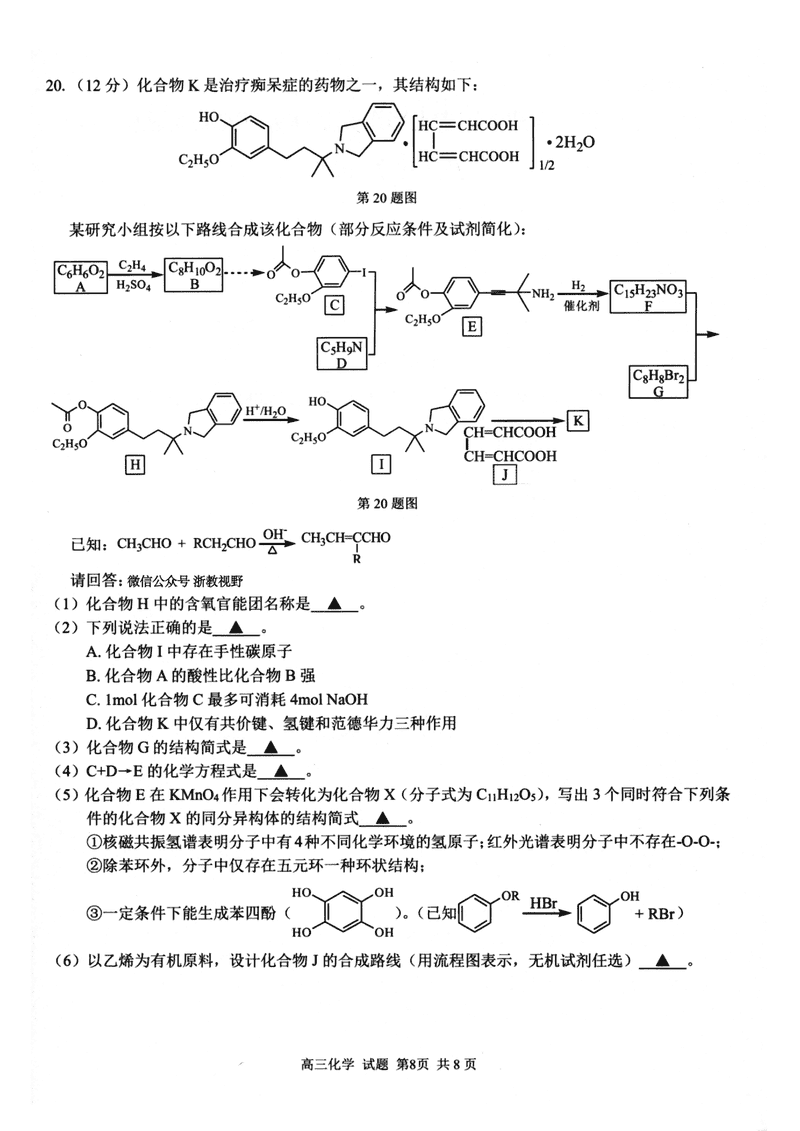 浙江省A9协作体2026届高三暑假返校联考数学试题质量较高,题型多样,将作为考察考生对相应考点的掌握程度,考后将及时整理...