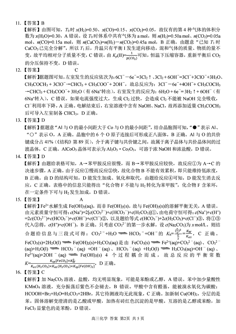 化学试题及答案解析