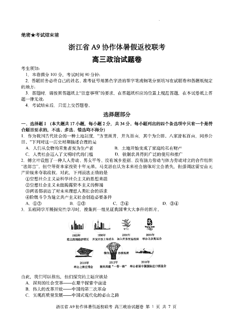 浙江省A9协作体2026届高三暑假返校联考政治试题质量较高,题型多样,将作为考察考生对相应考点的掌握程度,考后将及时整理...