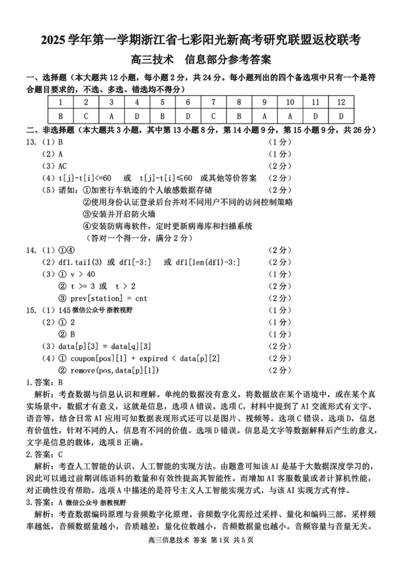 导读浙江省七彩阳光新高考研究联盟2026届高三上学期返校联考技术试题质量较高,题型多样,将作为考察考生对相应考点的掌握程度,考后将及时整理试题及答案解析相关信息,以供考生学习交流!汇总:2025年8月浙江七彩阳光新高考研究联盟暑假返校联考技术试