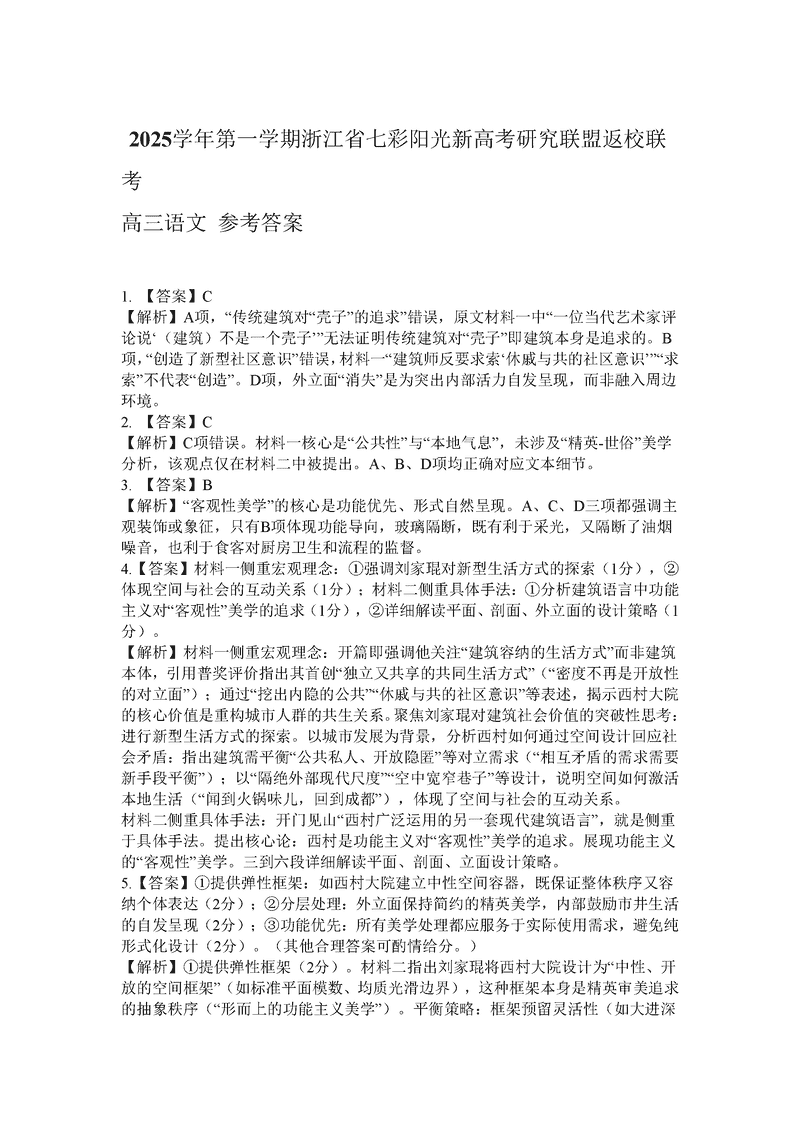 浙江省七彩阳光新高考研究联盟2026届高三上学期返校联考语文试题质量较高,题型多样,将作为考察考生对相应考点的掌握程度,考后将及时整理试题及答案解析相关信息,以供考生学习交流!