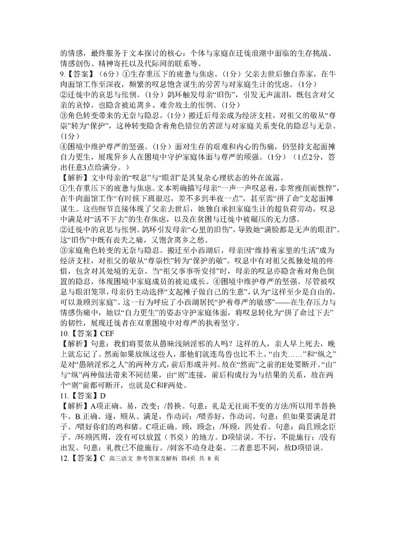 浙江省A9协作体2026届高三暑假返校联考语文试题质量较高,题型多样,将作为考察考生对相应考点的掌握程度,考后将及时整理...