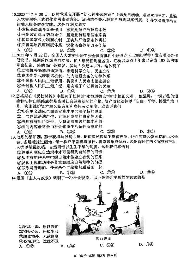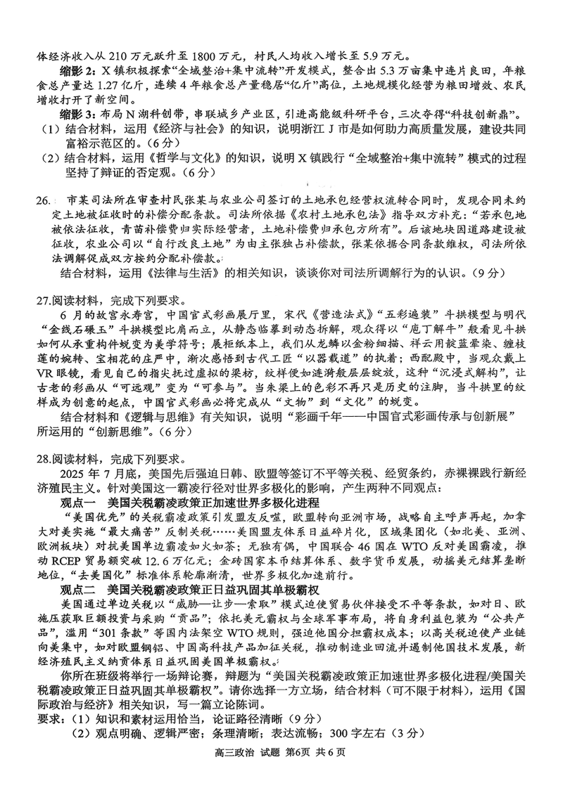 浙江省A9协作体2026届高三暑假返校联考政治试题质量较高,题型多样,将作为考察考生对相应考点的掌握程度,考后将及时整理...