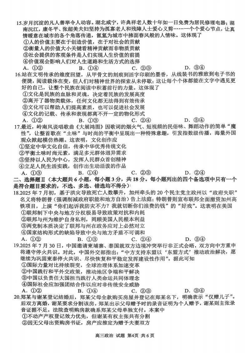 导读浙江省七彩阳光新高考研究联盟2026届高三上学期返校联考政治试题质量较高,题型多样,将作为考察考生对相应考点的掌握程度,考后将及时整理试题及答案解析相关信息,以供考生学习交流!汇总:2025年8月浙江七彩阳光新高考研究联盟暑假返校联考政治试