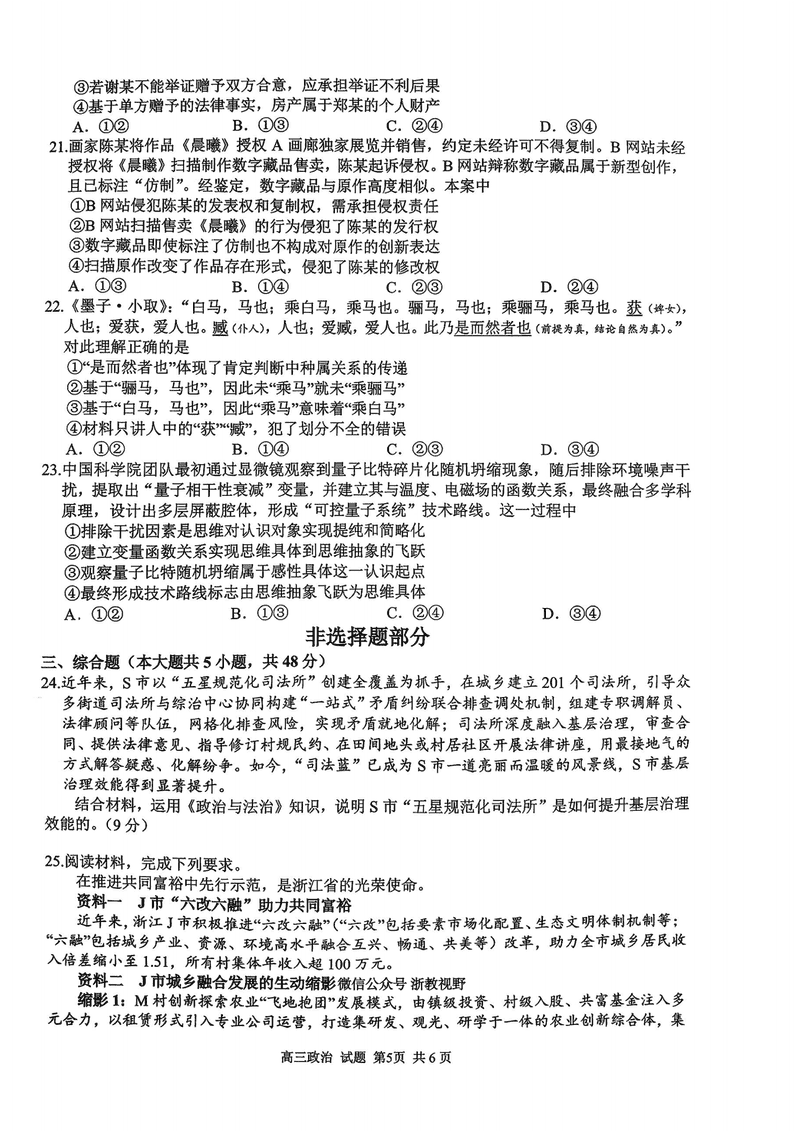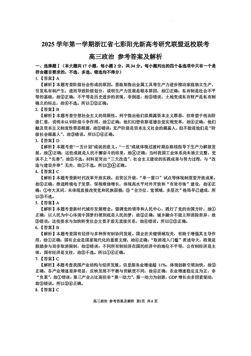 浙江省七彩阳光新高考研究联盟2026届高三上学期返校联考政治试题质量较高,题型多样,将作为考察考生对相应考点的掌握程度,考后将及时整理试题及答案解析相关信息,以供考生学习交流!