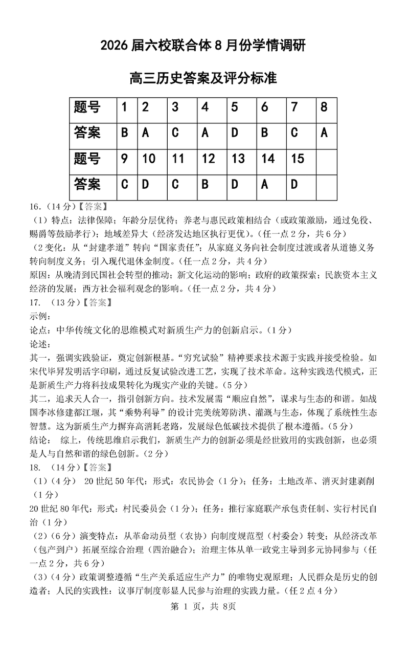 江苏省南京市六校联合体2026届高三上学期8月学情调研历史试题质量较高,题型多样,将作为考察考生对相应考点的掌握程度,考后将及时整理试题及答案解析相关信息,以供考生学习交流!