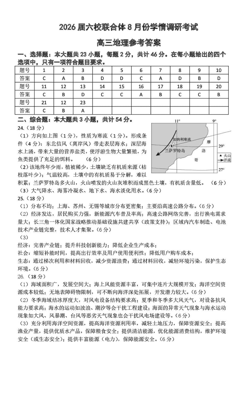 江苏省南京市六校联合体2026届高三上学期8月学情调研地理试题质量较高,题型多样,将作为考察考生对相应考点的掌握程度,考后将及时整理试题及答案解析相关信息,以供考生学习交流!