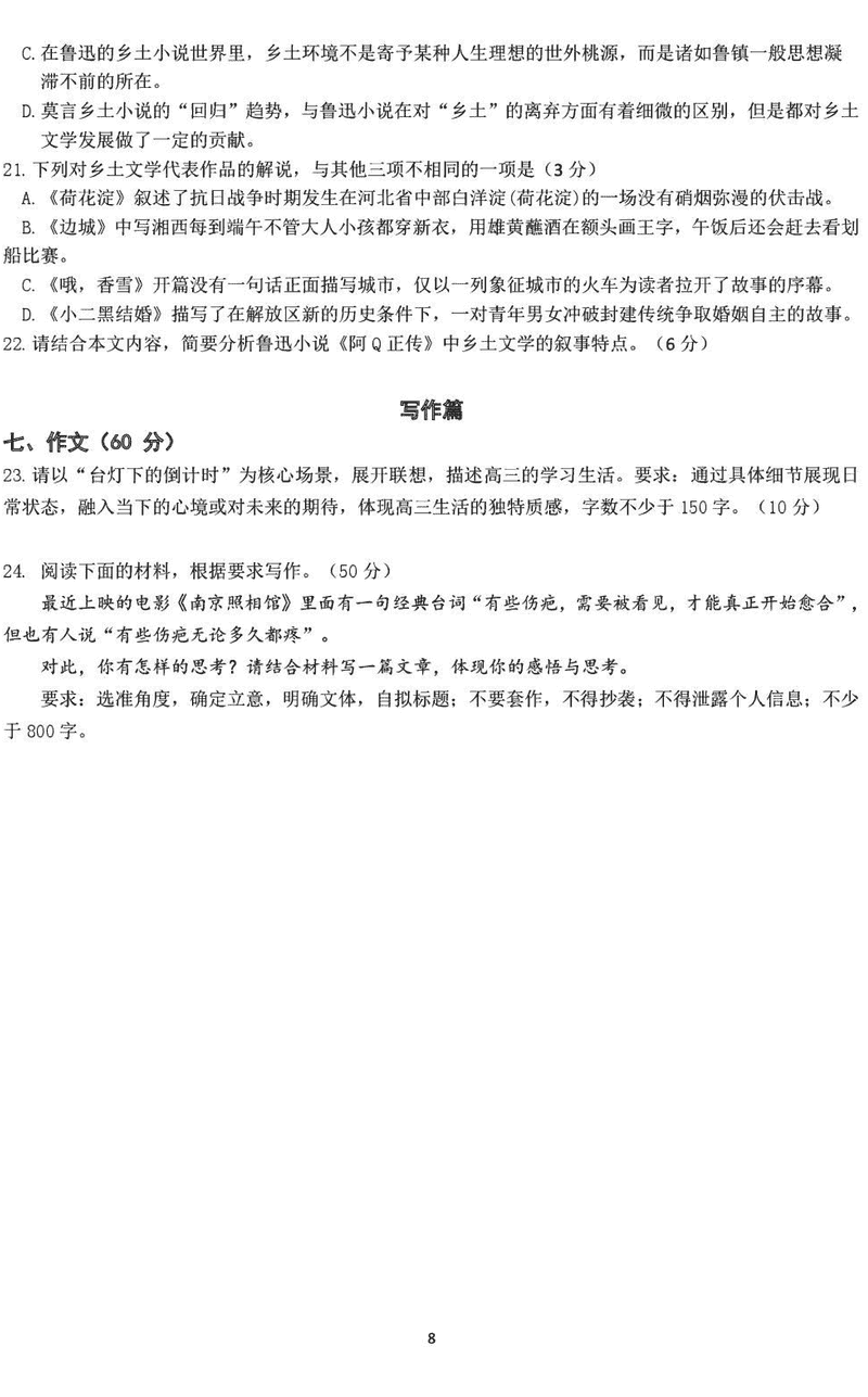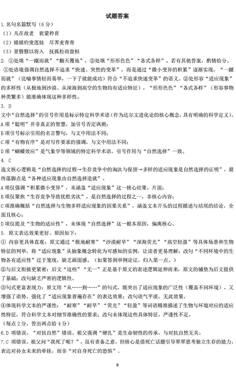 江苏省南京市六校联合体2026届高三上学期8月学情调研语文试题质量较高,题型多样,将作为考察考生对相应考点的掌握程度,考...