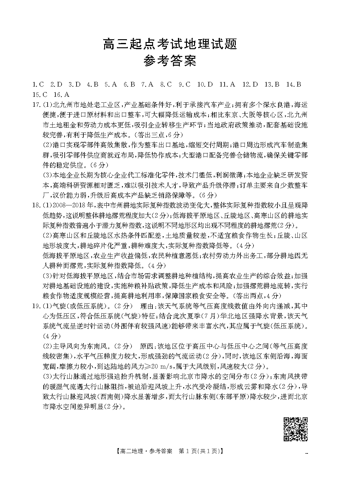 安徽皖西南高中振兴发展联盟2026届高三起点考地理试题质量较高,题型多样,将作为考察考生对相应考点的掌握程度,考后将及时...