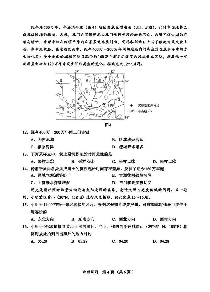 皖西南高中振兴发展联盟2026届高三起点考地理试卷及参考答案