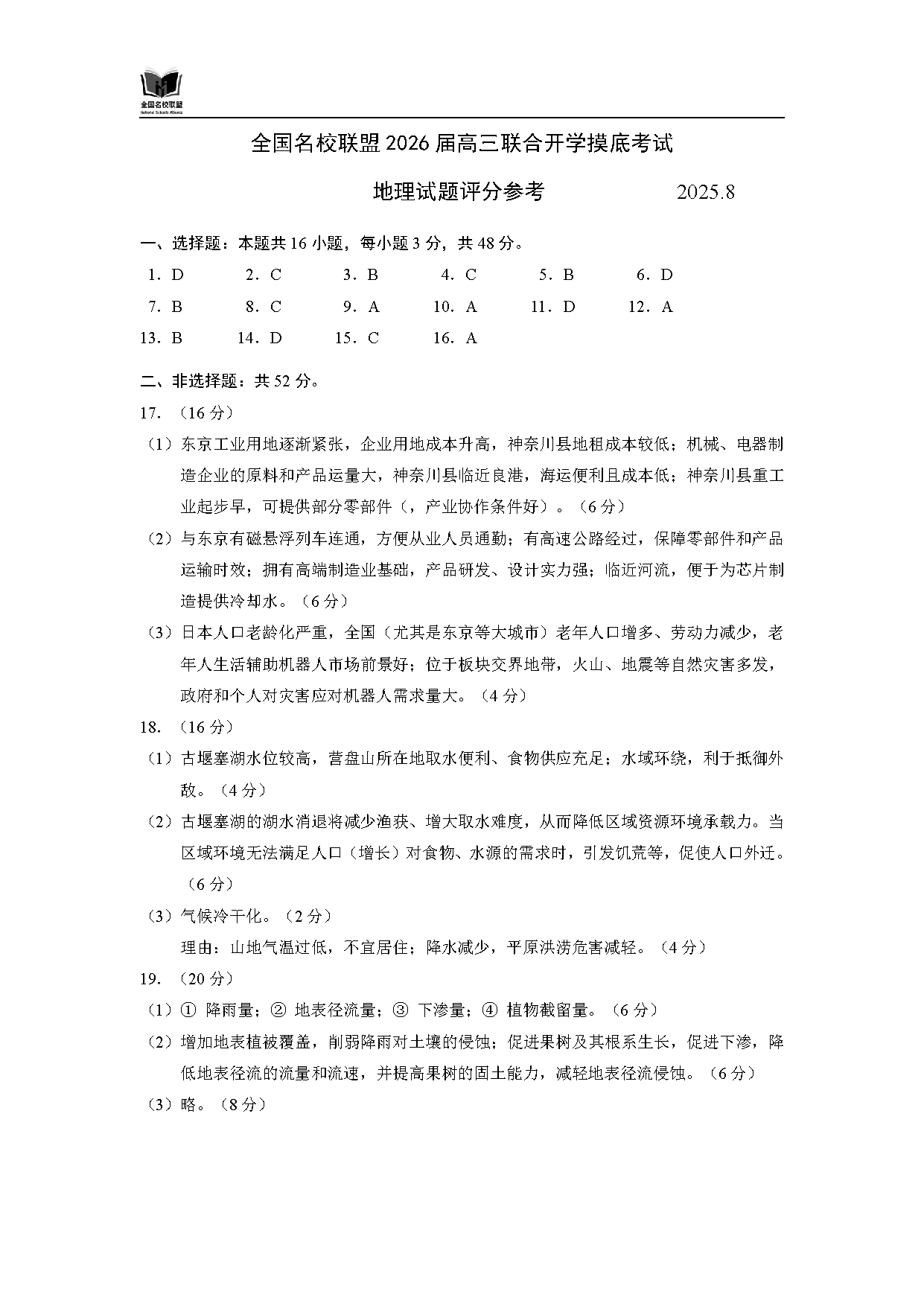内蒙古-全国名校联盟2026届高三联合开学摸底地理试题质量较高,题型多样,将作为考察考生对相应考点的掌握程度,考后将及时整理试题及答案解析相关信息,以供考生学习交流!