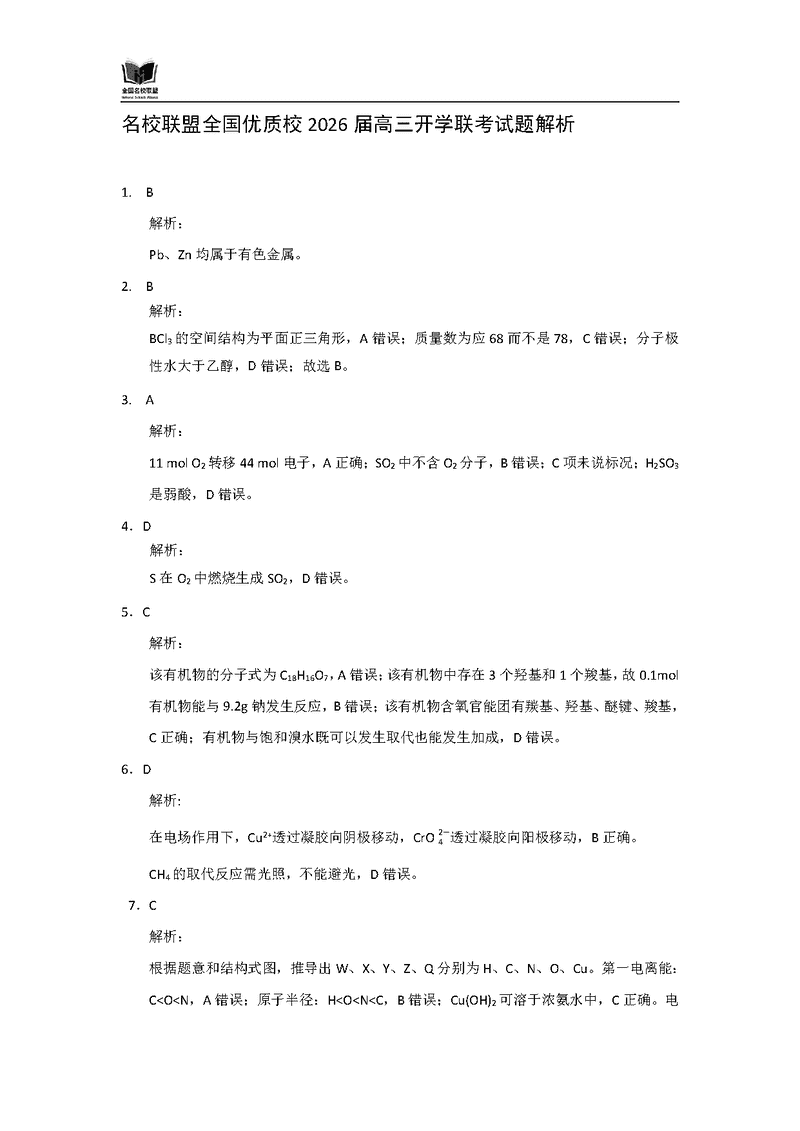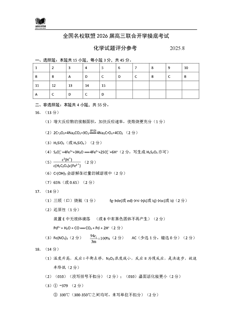 内蒙古-全国名校联盟2026届高三联合开学摸底化学试题质量较高,题型多样,将作为考察考生对相应考点的掌握程度,考后将及时整理试题及答案解析相关信息,以供考生学习交流!