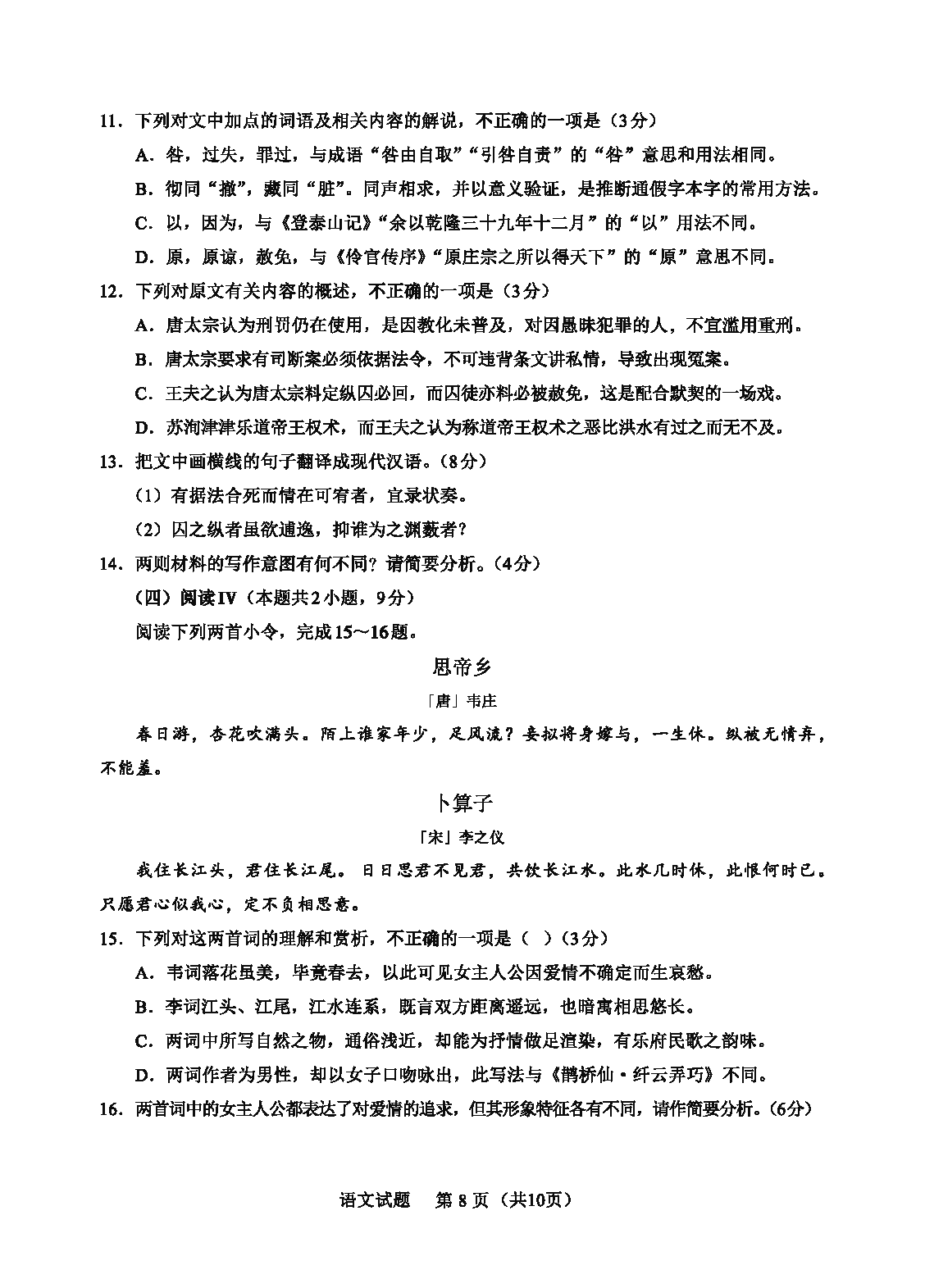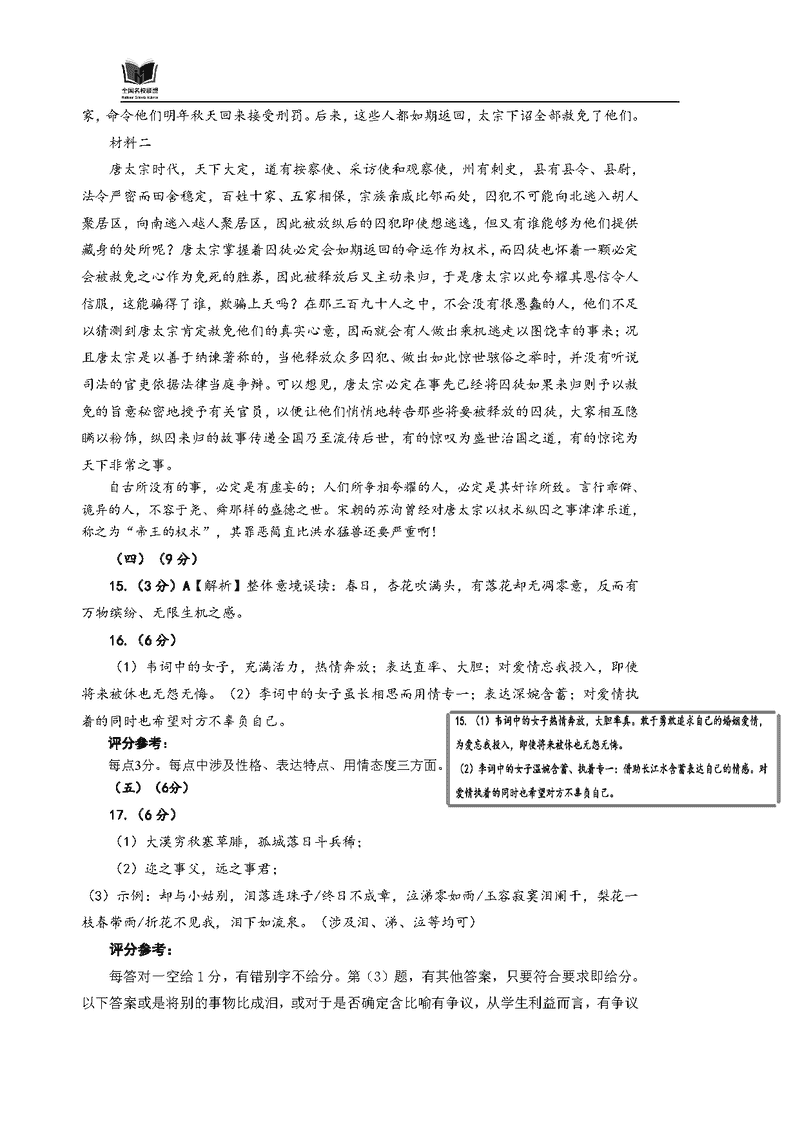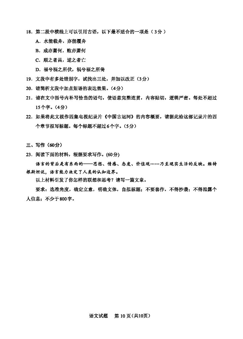 语文试题及答案解析